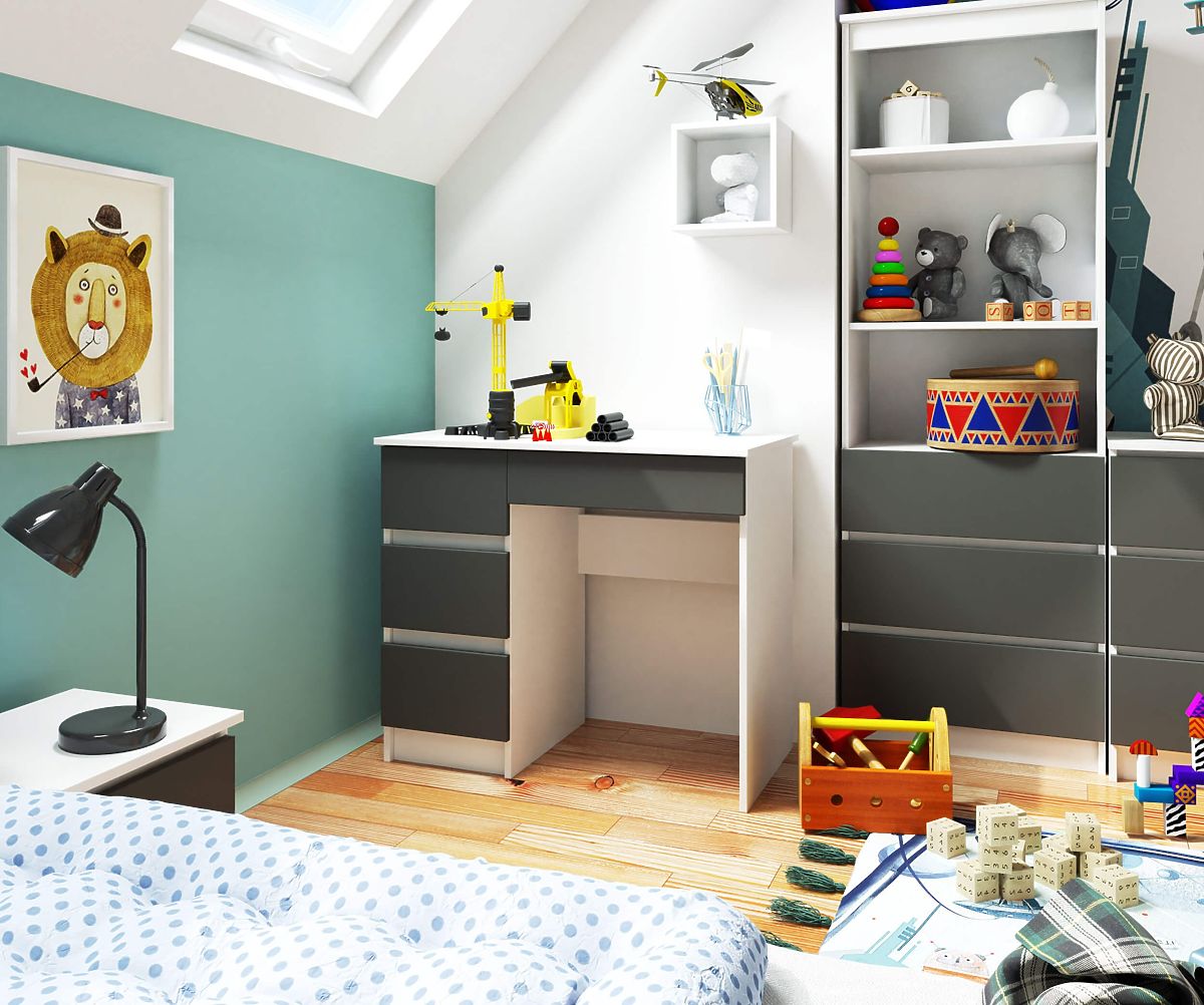 Zakaj izbrati ravno pisalno mizo A-7 v beli in grafitno sivi barvi? Tukaj so njene prednosti: