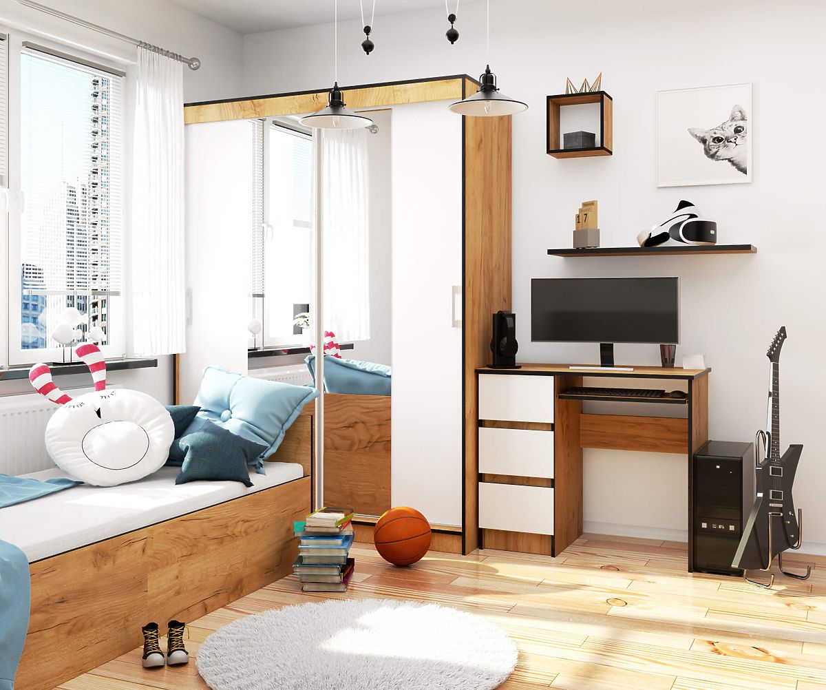 Računalniška miza je lahko funkcionalna in hkrati elegantna. Primer je pohištvo iz naše ponudbe: pisalna miza A-6 90 cm LEVA v barvi hrast craft z belimi frontami, ki izgleda kot pravo les. Odlikuje jo trdna izdelava in funkcionalnost. Miza je primerna za dnevno sobo, otroško sobo ali pisarno, olajša učenje in delo pred računalniškim zaslonom.
