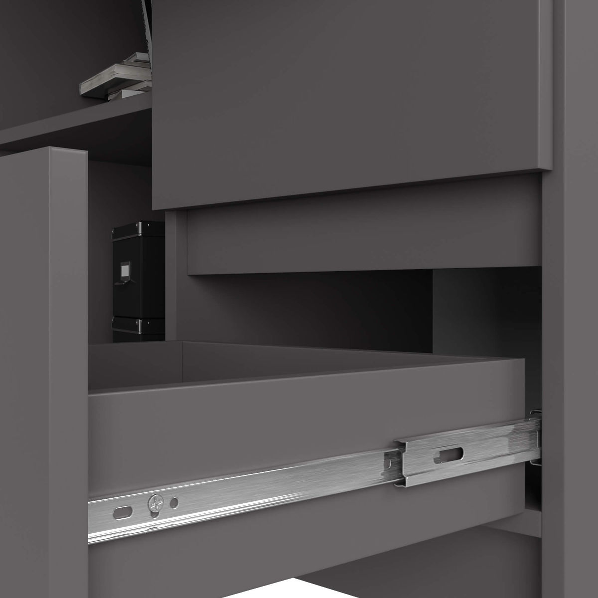 Kotna pisalna miza B16 s policami in predali v grafitno sivi barvi. .. več