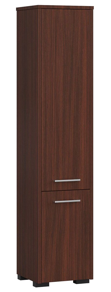 Dvovratni kopalniški steber, ki ga ponuja naša trgovina, je izdelek, ki omogoča pravilno izkoriščanje razpoložljivega prostora in povečuje njegovo estetsko vrednost. To je zato, ker je optimalno funkcionalen in stilski. Ta pohištveni kos je sestavljen iz dveh vrat – večjih zgoraj in manjših spodaj. Za njimi se nahaja praktičen regal. Police omogočajo shranjevanje različnih stvari, ki so v kopalnici nepogrešljive, kot so brisače, detergenti, higienski pripomočki in pralni praški. Ta izjemno prostoren steber bo zagotovo sprejel dodatke celotne družine. Njegov čudovit odtenek wenge si zasluži pozornost. Je klasična barva, ki prostoru doda ustrezno eleganco. Na vratih so nameščeni zelo stilski ročaji za odpiranje. Njegove dimenzije omogočajo namestitev v kopalnici, kjer imamo na voljo malo prostora. Zaradi ergonomske oblike se prilagodi vsakemu prostoru. Robovi stebra so oblepljeni z materialom ABS, kar zagotavlja, da ga ne poškoduje niti dolgotrajna uporaba pohištva. Poleg tega laminirana plošča prispeva k izjemni trpežnosti stebra.