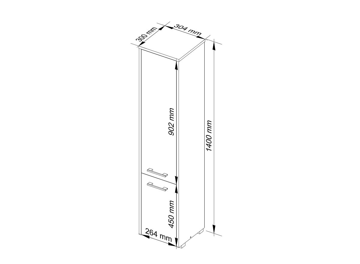 Visoka kopalniška omara Fin 2 vrata je univerzalno pohištvo, ki se lahko uporablja v vsaki kopalnici, ne glede na njeno velikost. Eleganten dizajn in barva hrast sonoma zagotavljata, da omara popolnoma ustreza kopalnici v katerem koli slogu, s klasično ali moderno opremo, ter k ploščicam in keramiki v različnih odtenkih. Zaradi svojih dimenzij lahko visoka kopalniška omara zapolni pogosto neizkoriščen prostor v kotu kopalnice, prav tako pa se lahko postavi poleg umivalnika, pralnega stroja ali prhe. Stoječa kopalniška omara Fin se odlikuje po zelo skrbni izdelavi. Ima dvoje udobnih in širokih vrat z ergonomskimi ročaji, ki zagotavljajo udoben dostop do notranjosti pohištva. Globoke in prostorne police so idealne za shranjevanje brisač, toaletnih potrebščin, kozmetike ali čistilnih sredstev v omari. Visoka kopalniška omara je izdelana iz laminirane plošče, odporne proti obrabi in vodi. ABS robovi, s katerimi je omara zaključena, so trpežni, se ne razbarvajo in dodatno ščitijo omaro pred poškodbami.