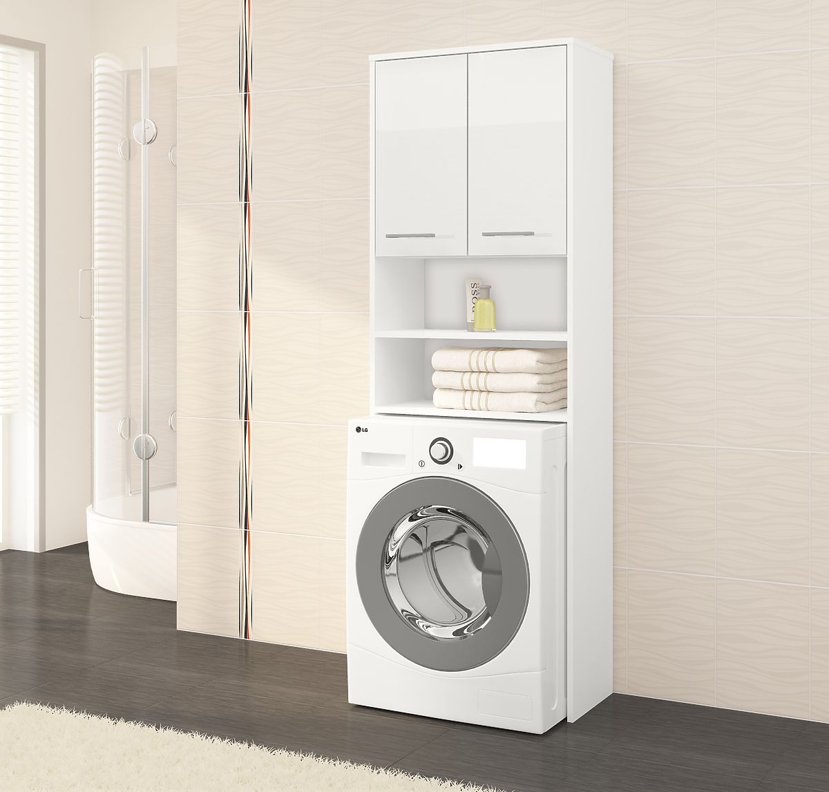 Lukahome.si » Bathroom & Toilet / Kopalnica omare / KOPALNIŠKA OMARICA FIN NAD PRALNI STROJ BELI SIJAJ