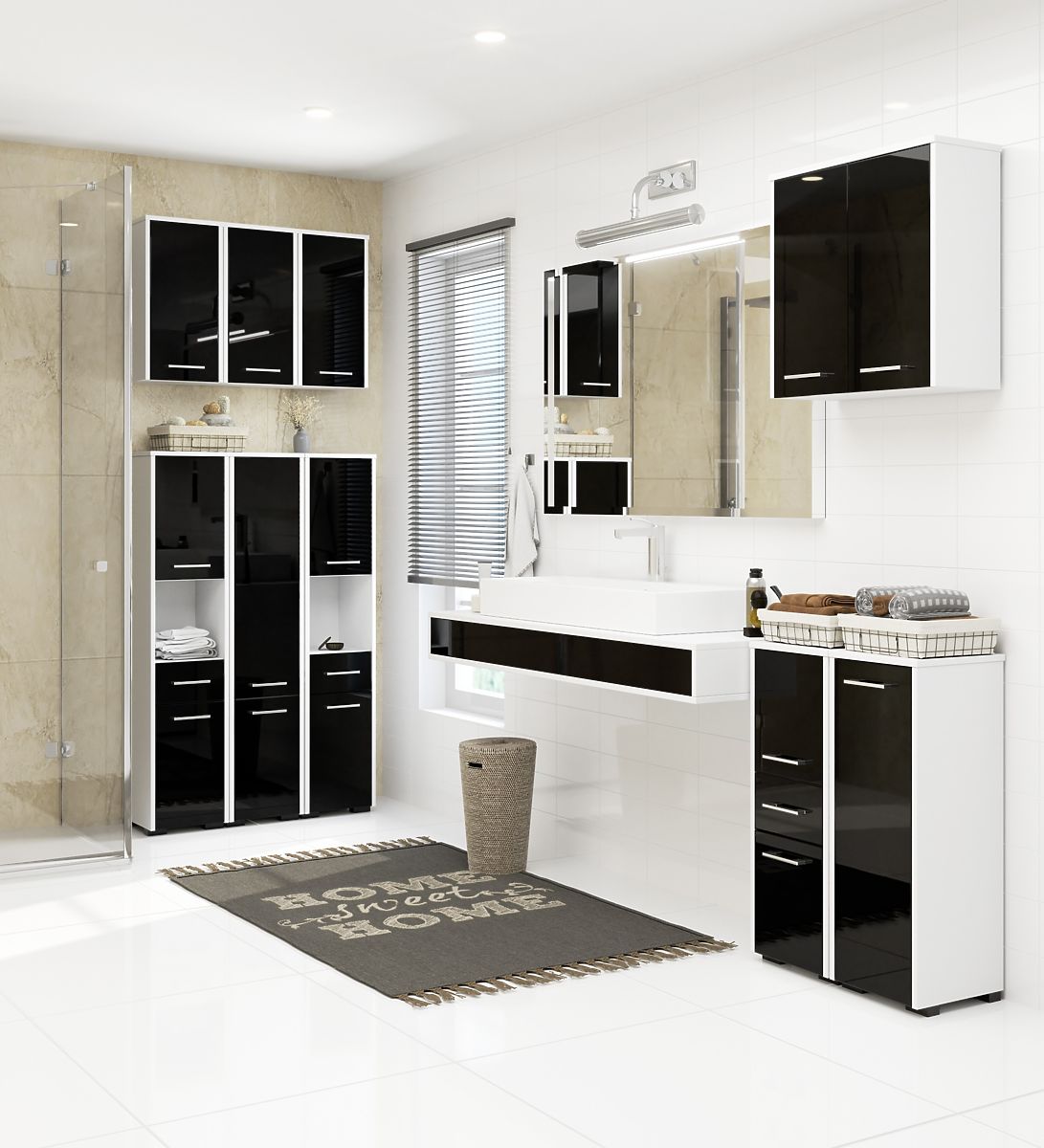 Omarica-stebrič, kopalniški regal fin 2D 1SZ (bel/črn sijaj) je odlična izbira za kopalniške prostore. Izdelana je iz materialov, ki se ne poškodujejo zaradi vlage, kar zagotavlja dolgo življenjsko dobo pohištva in naredi našo kopalnico elegantno in zelo praktično.