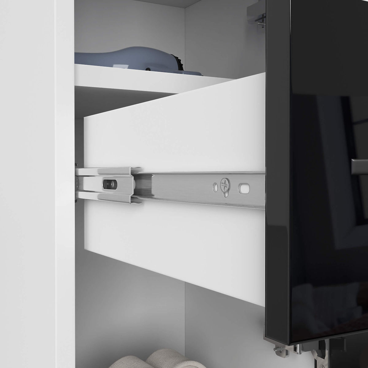 Za kopalniške prostore ponujamo omarico-stebrič, kopalniški regal fin 2D 1SZ (bel/črn sijaj), ki: