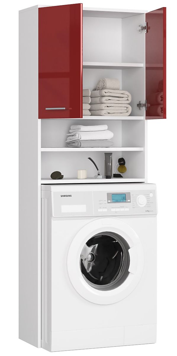Lukahome.si » Bathroom & Toilet / Kopalnica omare / KOPALNIŠKA POLICA FIN NAD PRALNI STROJ BELA / RDEČI LESK