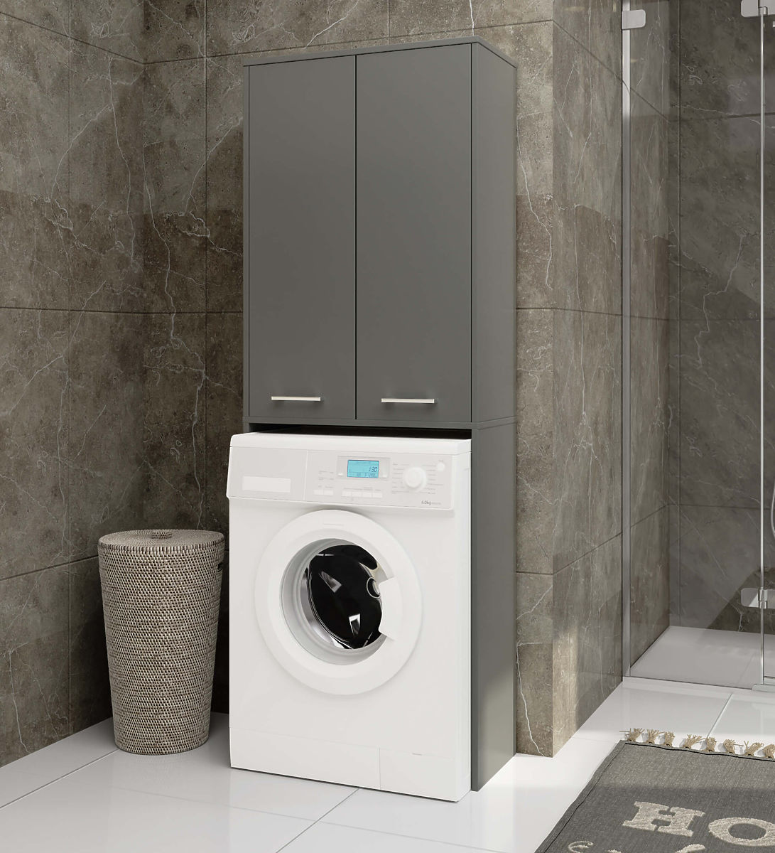 Če želimo, da je naša kopalnica opremljena udobno in hkrati stilsko, moramo staviti na solidno in funkcionalno izdelano pohištvo. Takšna je zagotovo omara nad pralnim strojem. Je idealen način za izkoriščanje prostora nad pralnim strojem, ki običajno ostane neizkoriščen. Optimalne dimenzije tega stolpca pomenijo tudi, da je odlična rešitev za kopalnice z majhno površino. Ergonomska oblika omogoča njegovo uporabo v katerem koli prostoru. Ta pohištvo, sestavljeno iz nadgradnje nad pralnim strojem in omare nad njim, ustvarja veliko količino prostora za shranjevanje različnih predmetov. V omaro lahko shranimo na primer detergente ali higienske pripomočke. Te police so ustvarjene za shranjevanje osebne kozmetike ali brisač. Čudovit odtenek grafitno sive nam zagotavlja eleganten videz kopalnice. Laminirana plošča, iz katere je ta omara izdelana, je visokokakovosten material. Zagotavlja trajnost in trdnost pohištva ter ohranjanje njegovega estetskega videza.