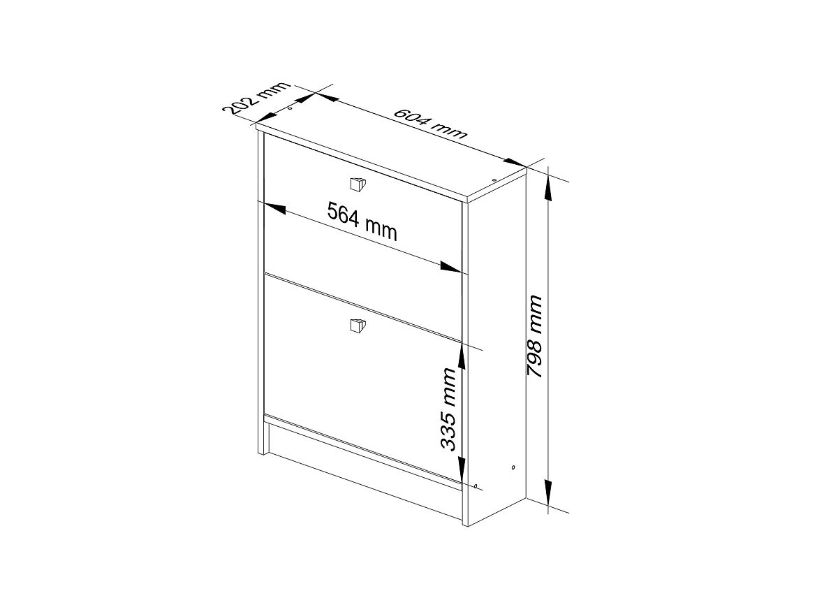Omara za čevlje, ki jo imamo čast predstaviti, po videzu spominja na komodo. Namesto omaric ali predalov je opremljena z dvema shranjevalnima prostoroma za čevlje, ki brez težav sprejmeta več ali celo desetine parov čevljev. Predali se nagibajo navzdol, kar omogoča enostaven dostop do shranjenih predmetov. Čevlje v takšni omari za čevlje je mogoče shranjevati tako prosto kot v škatlah. Pohištvo je izdelano iz trpežne, močne in proti praskam odporne laminirane plošče v modni in pri naših spletnih kupcih priljubljeni barvi wenge. Pozornost si zaslužijo tudi efektni ročaji.