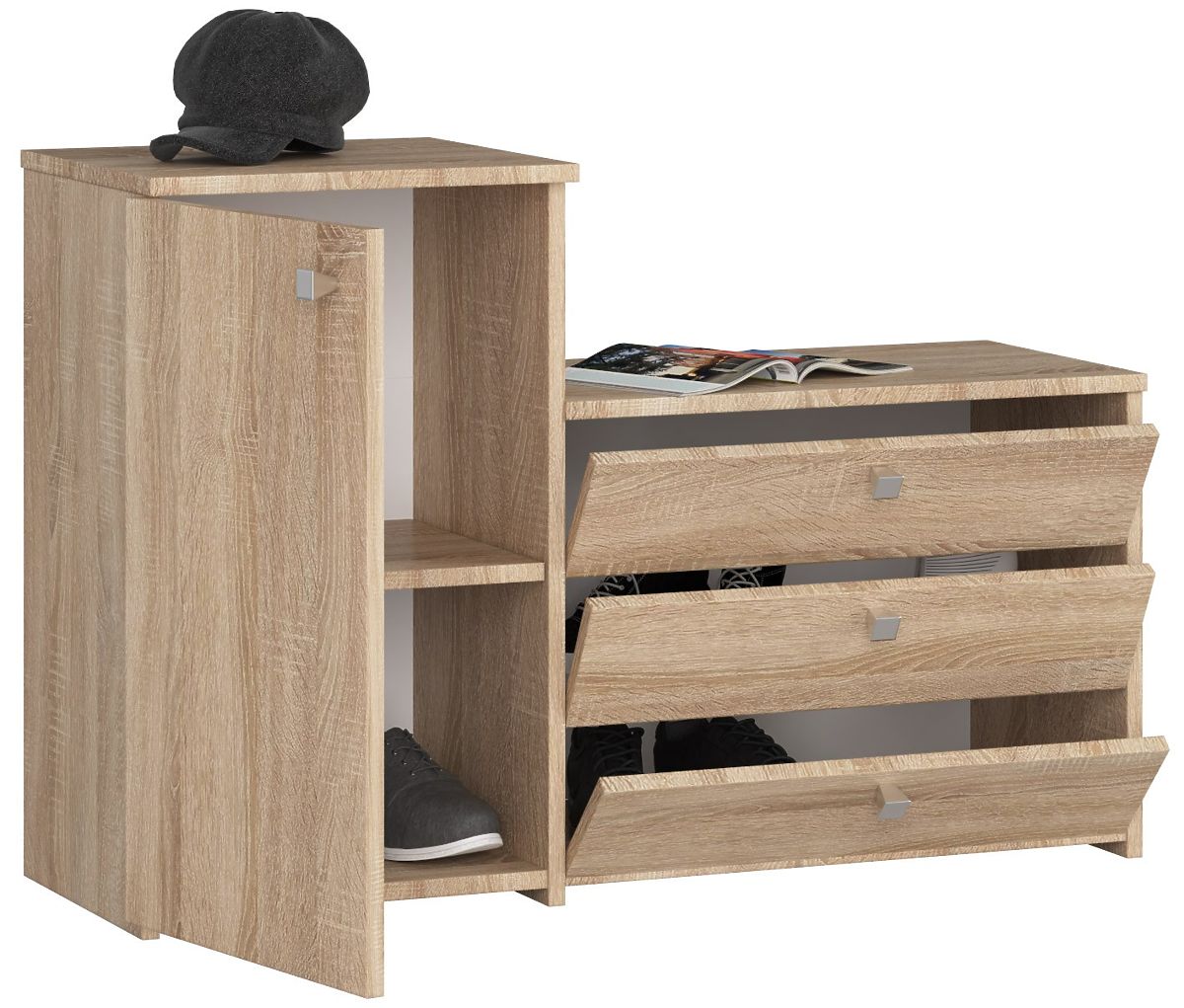 Lukahome.si » Pohištvo / Stojala za čevlje / Omara za čevlje S16 s komodo 3 nagibna vrata - hrast sonoma
