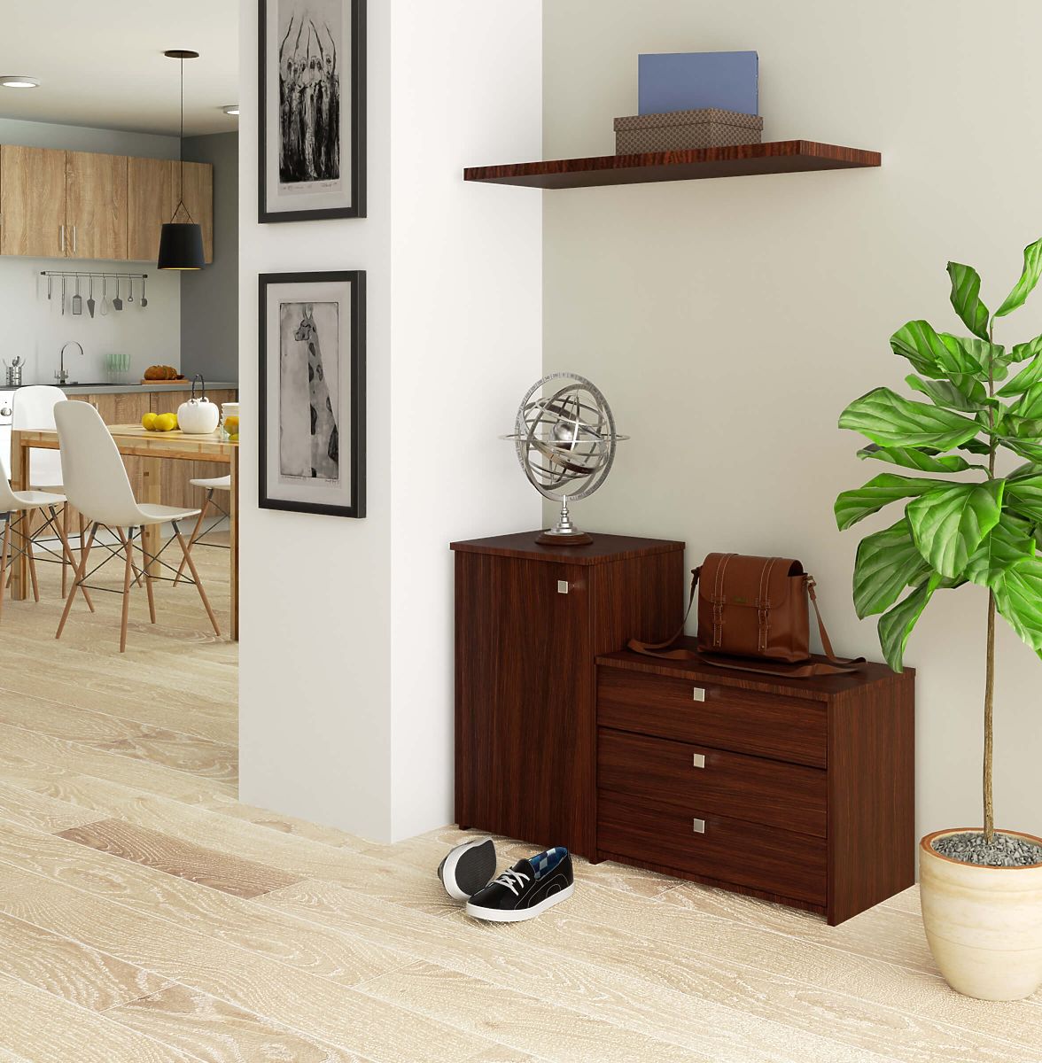 SESTAV POHIŠTVA ZA PREDSOBO WENGE Omara za čevlje, povezana s komodo, zagotavlja funkcionalnost in prihranek prostora.