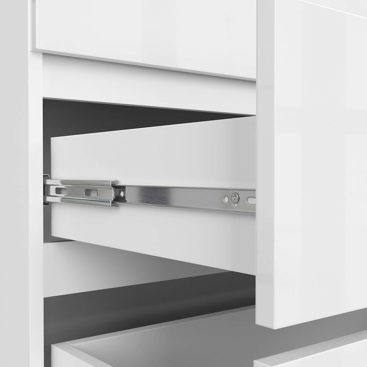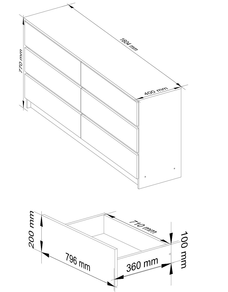 - Korpus komode izdelan iz laminirane plošče beli mat 16 mm, odporne proti obrabi