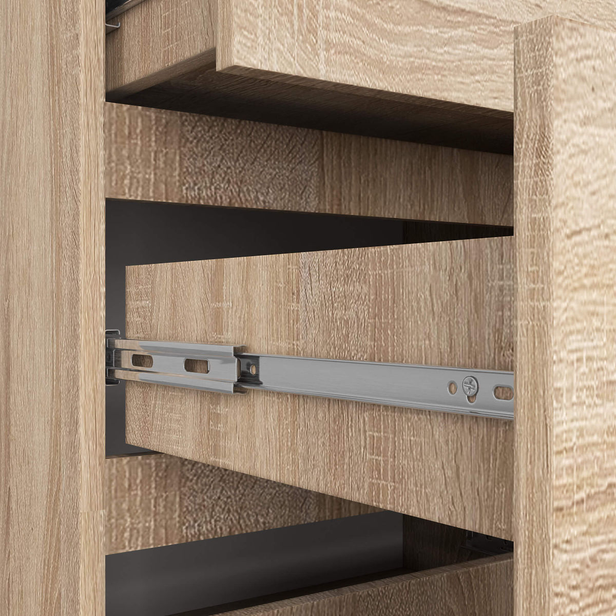 Deset prostorskih predalov je idealno mesto za shranjevanje dokumentov, škatel z drobnarijami ali oblačil. To olajša vzdrževanje reda v stanovanju bolj kot kdaj koli prej! Gladko izvlečenje in potiskanje predalov je zagotovljeno s kovinskimi krogličnimi vodili, tako da nič ne zagozdi, gibanje predala je gladko in tiho.