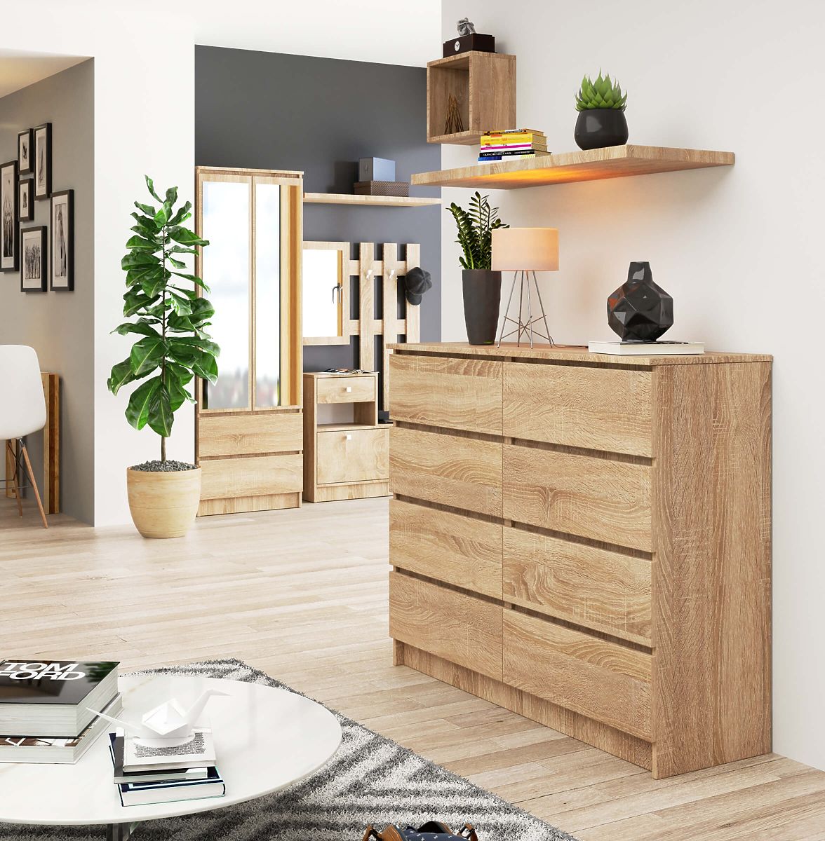 Komoda K120 z osmimi predali v barvi hrast sonoma. .. več