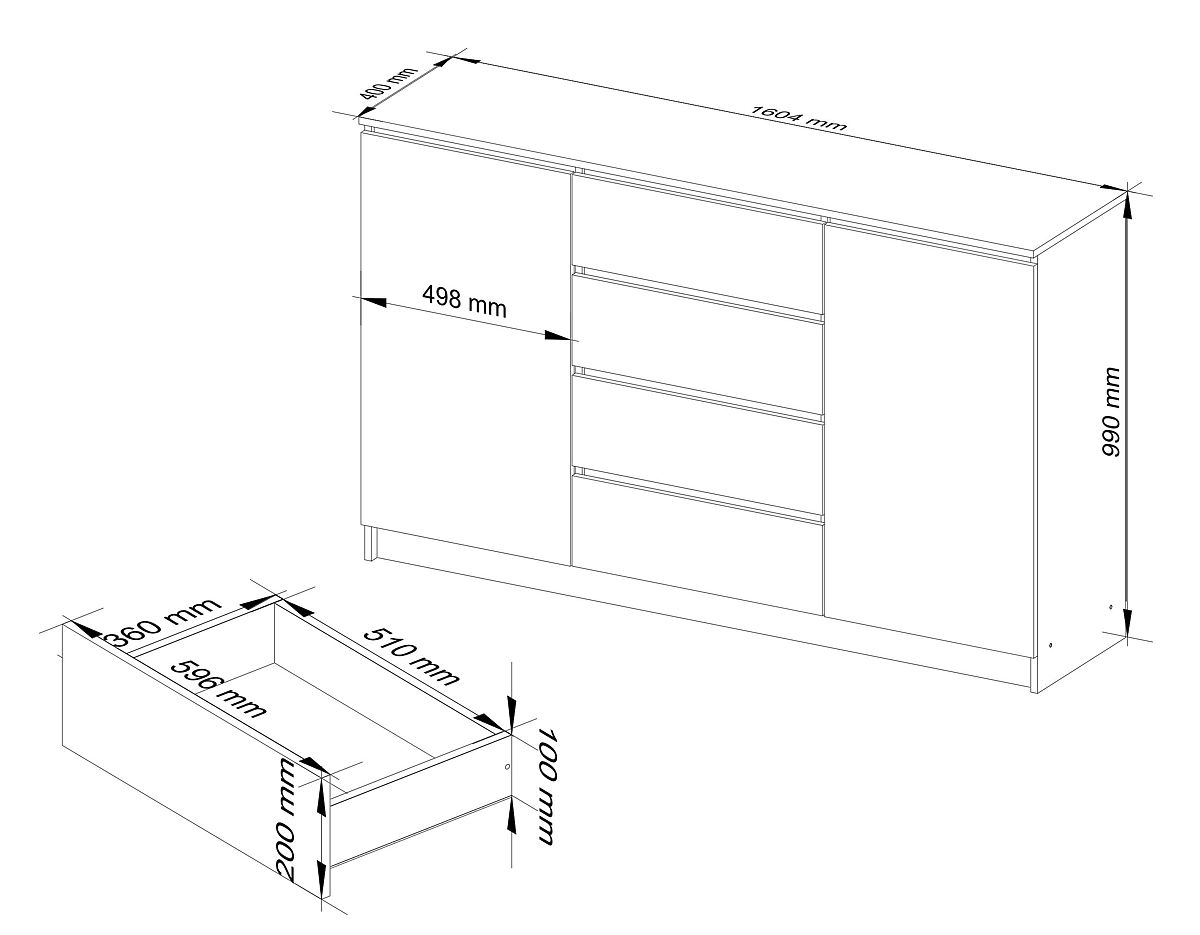 - Komoda izdelana iz visoko kakovostne laminirane plošče 16 mm, odporne proti obrabi, proizvajalec kronospan