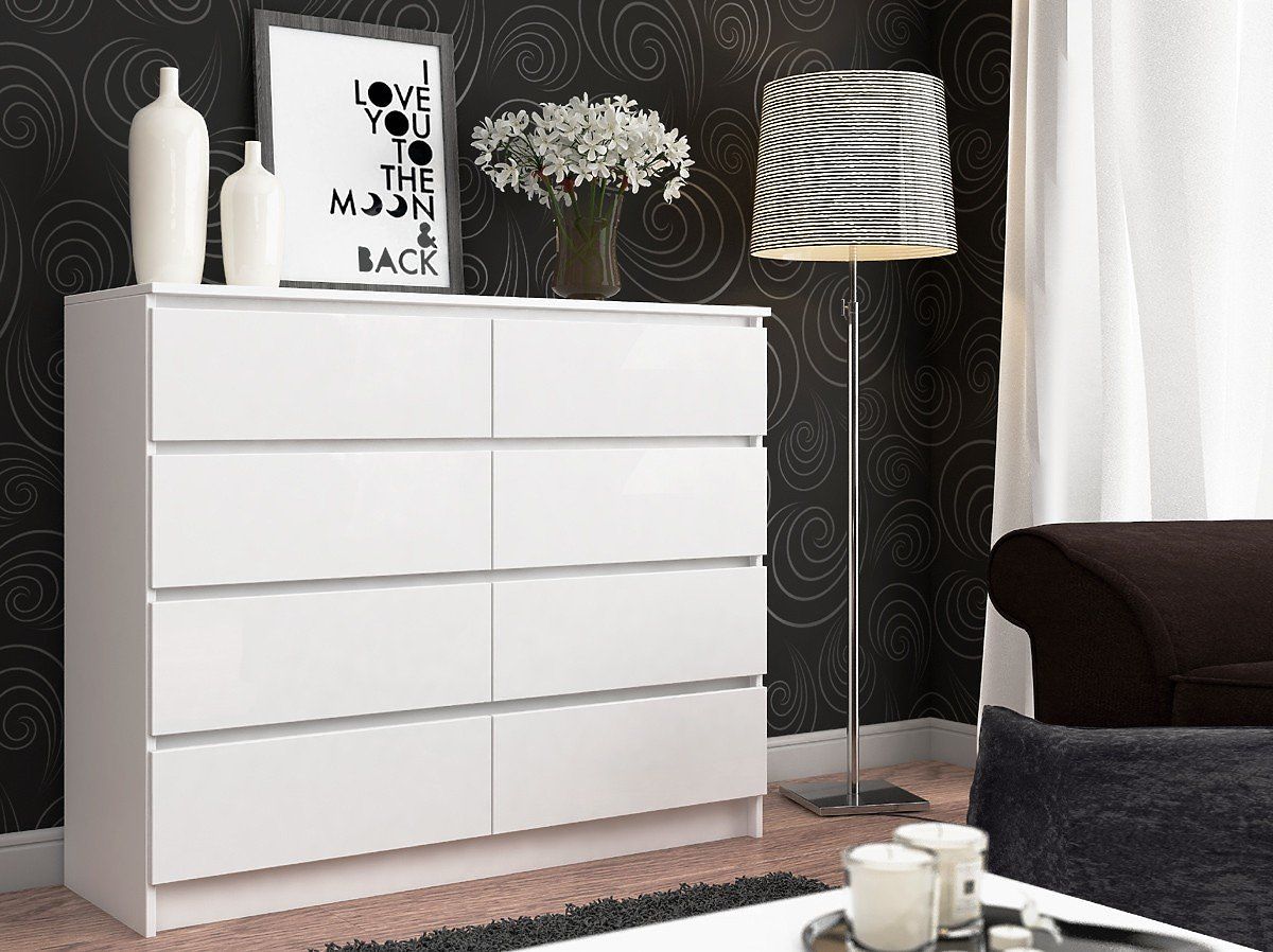 Bela je brezčasna barva, ki je vedno priljubljena med strankami, ki cenijo svetle, prijetne interierje. Poleg tega je pohištvo v beli barvi enostavno za vzdrževanje, kar je tudi vredno omeniti. Komoda K140 je belo pohištvo z osmimi predali. Pozornost si zaslužita preprostost in eleganca izdelka, ustvarjenega v skandinavskem slogu. Ta vrsta opreme se zelo dobro prilega v številne prostore - tako bivalne kot pisarniške - vsakodnevno očara z enostavnostjo uporabe in funkcionalnostjo. Predali se enostavno izvlečejo, kar omogoča shranjevanje različnih predmetov, celota pa je izdelana iz kakovostnih materialov, ki izkazujejo visoko odpornost proti morebitnim praskam in poškodbam. Izdelek je na voljo po odlični ceni.