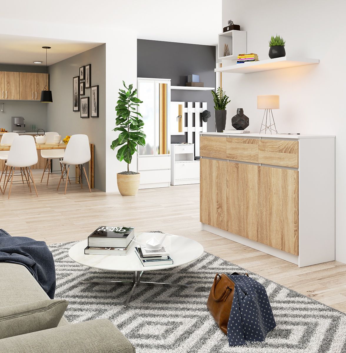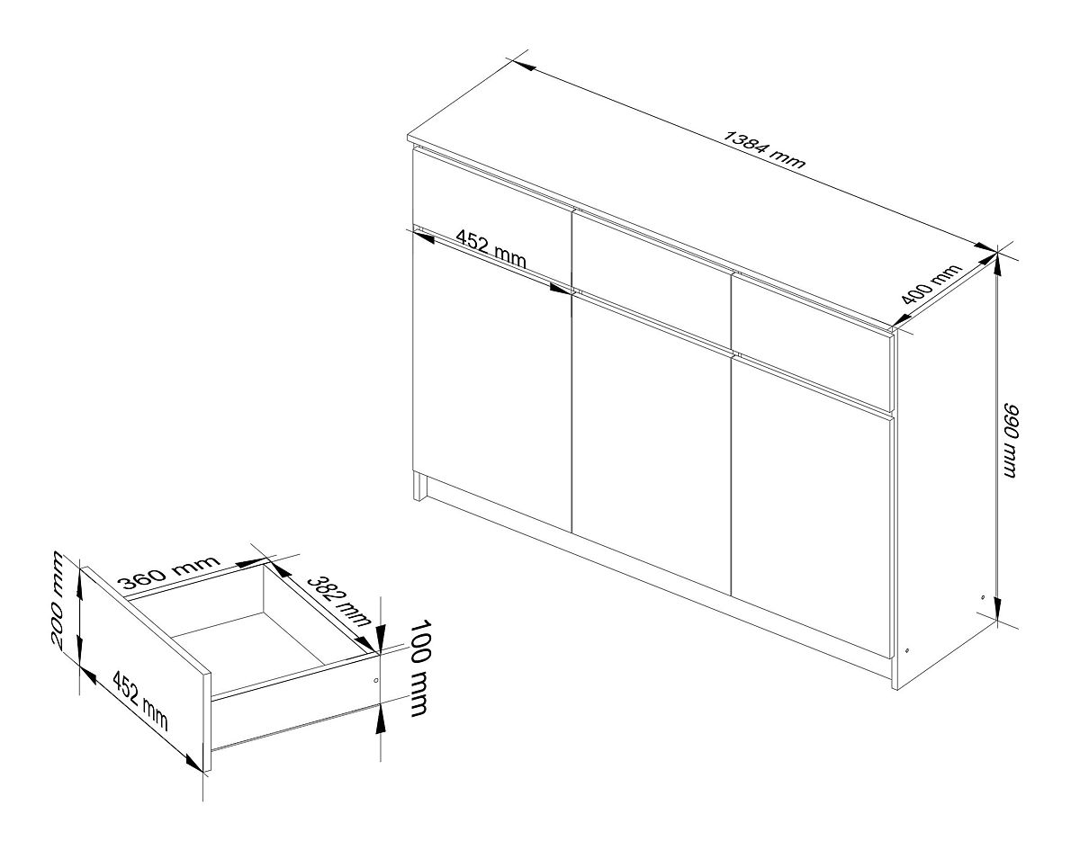 Komoda s tremi predali in tremi vrati, barva bela in hrast Sonoma. .. več