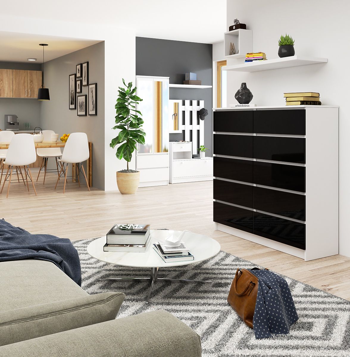 Komoda z 10 predali v črnem sijaju. .. več