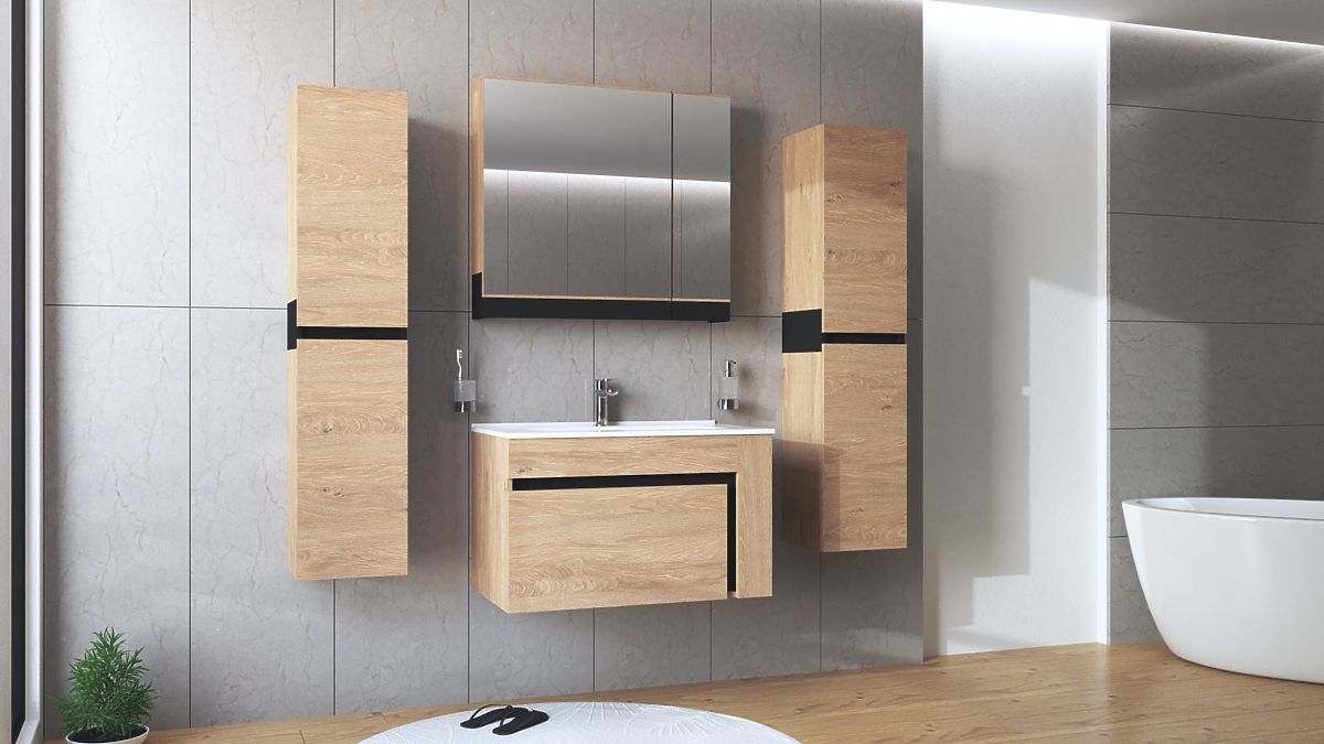 Omara pod umivalnik iz zlatega hrasta z dimenzijami 80/45/47 cm. .. več