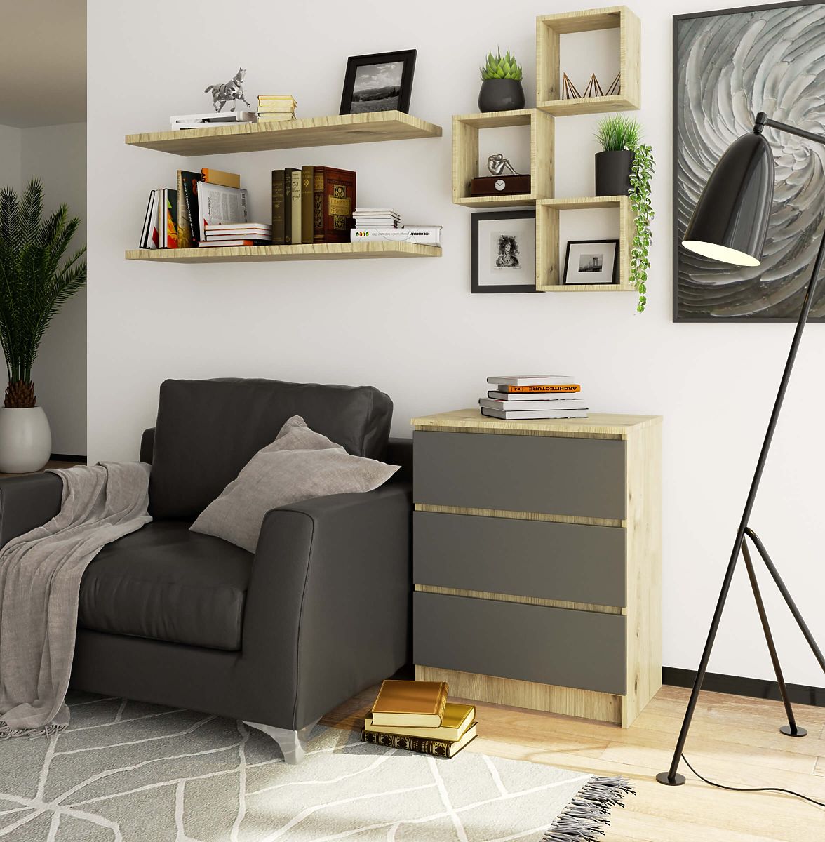 KOMODA K60 3 PREDALI Izdelana iz laminirane plošče debeline 16 mm, odporne proti obrabi.