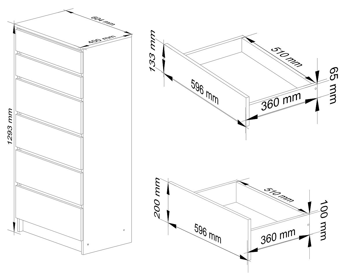 KOMODA K60 6 PREDALOV Izdelana iz 16 mm laminirane plošče, odporne proti obrabi.