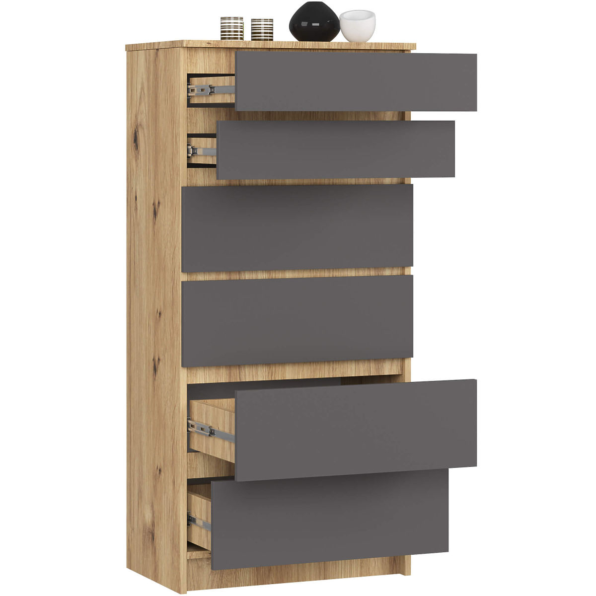 Komoda z 6 predali v hrastu Artisan in grafitno sivi barvi. .. več