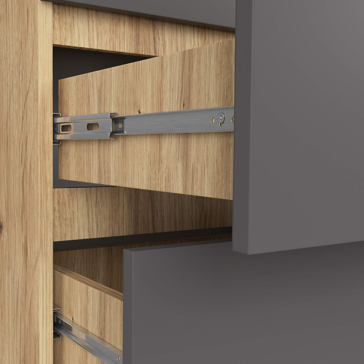 Robovi oblepljeni z ABS robom MEŠANE BARVE!!! KORPUS HRAST ARTISAN / FRONTE GRAFIT SIVA