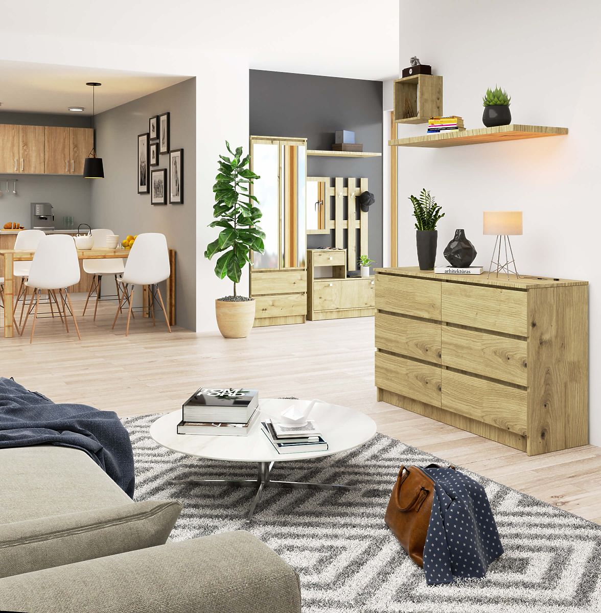 Komoda s 6 predali iz laminirane plošče, Hrast Artisan. .. več