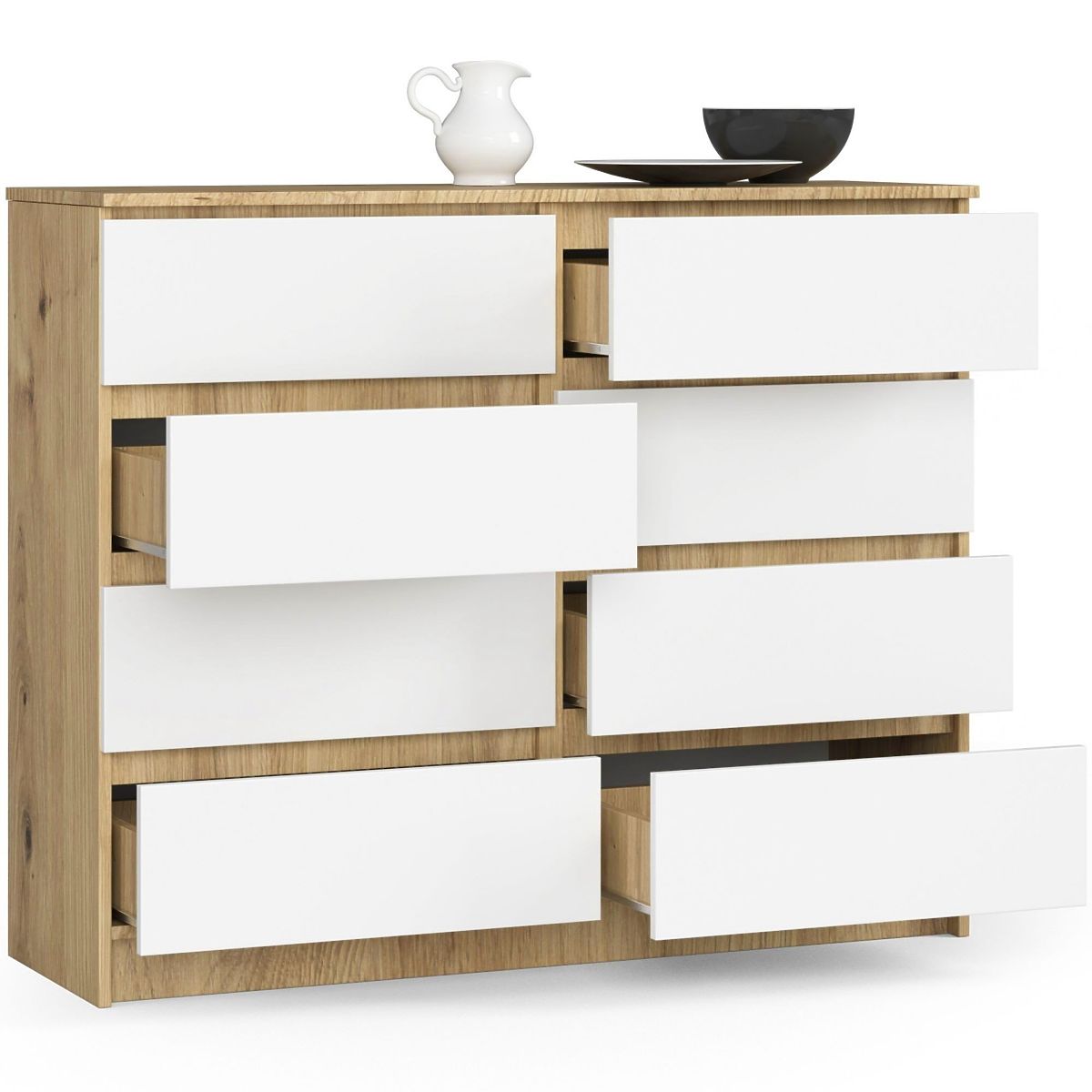 Komoda z 8 predali v hrastu Artisan in beli barvi. .. več