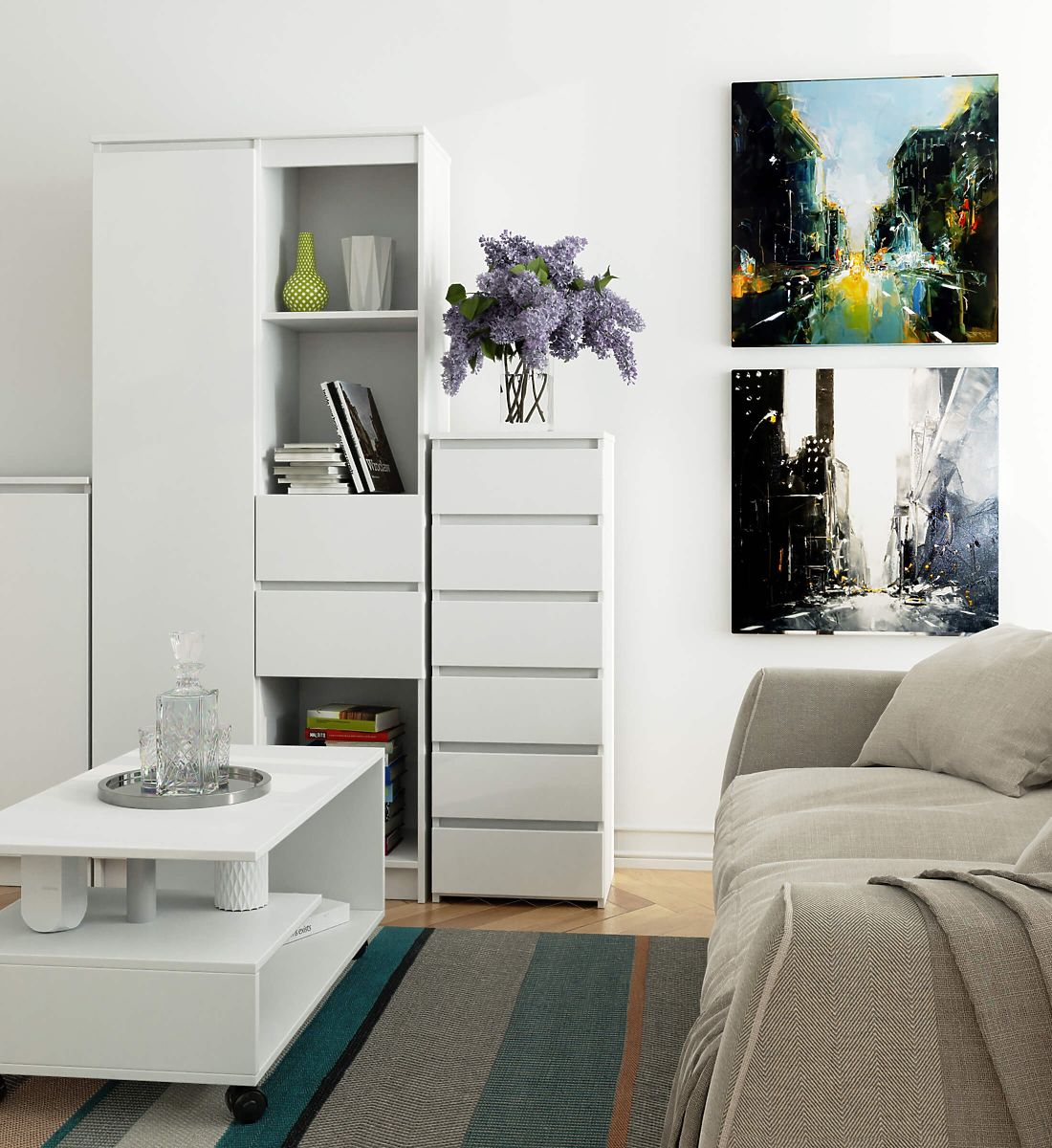 - eleganten videz - komoda je preprosta v obliki, odlikuje jo stilna bela barva,