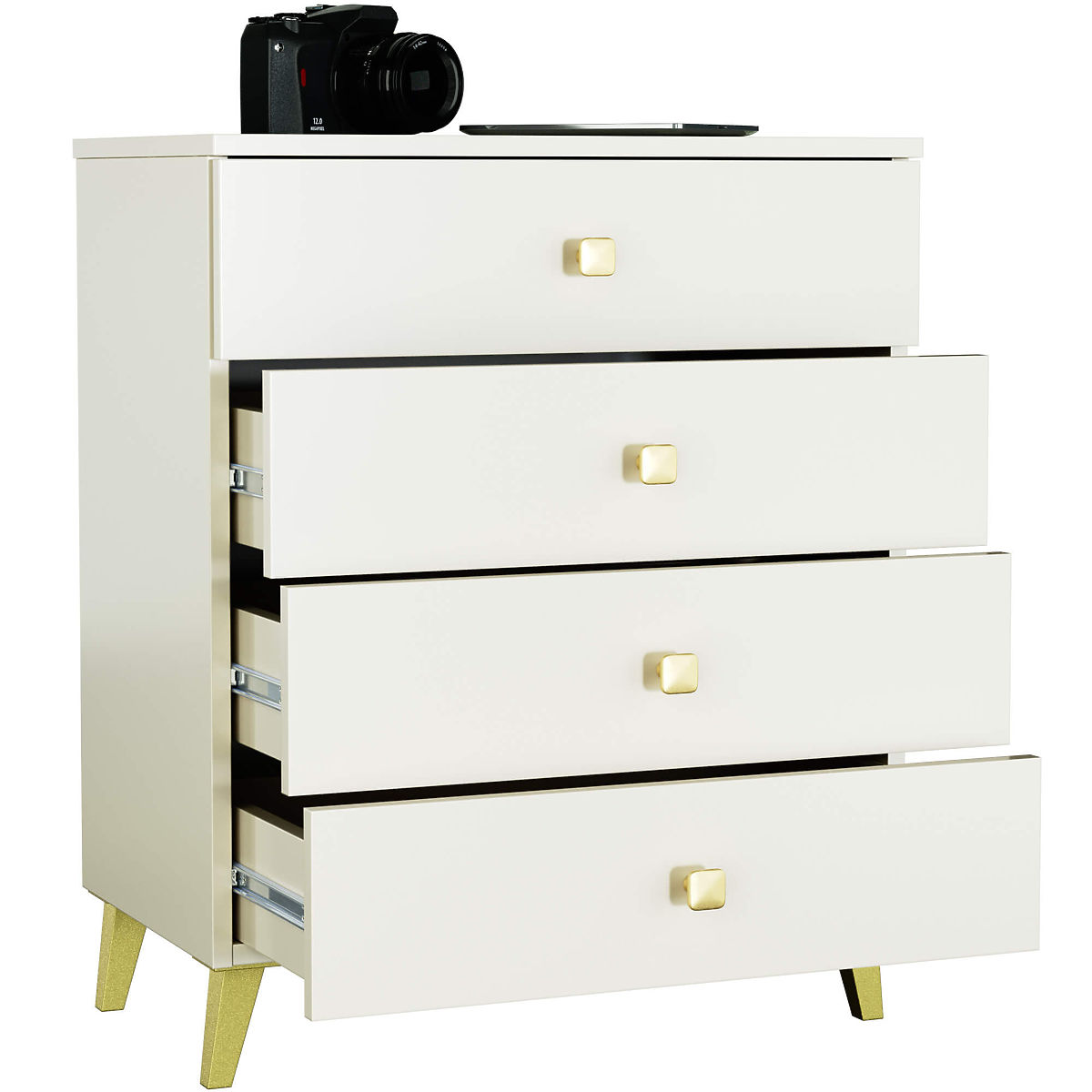 Majhna komoda je kos pohištva, ki bo našel svoje mesto v vsakem prostoru. Sodobne barve, trdna konstrukcija in skrbna izdelava so pripeljali do nastanka omarice, ki se bo izkazala na primer v predsobi, dnevni ali mladinski sobi, pa tudi v spalnici. Lahko se uporablja tudi v pisarniškem prostoru, kjer omogoča shranjevanje številnih dokumentov in drugih pisarniških potrebščin. Komoda je sestavljena iz 4 predalov. Pohištvo združuje barve kašmir in zlato.
