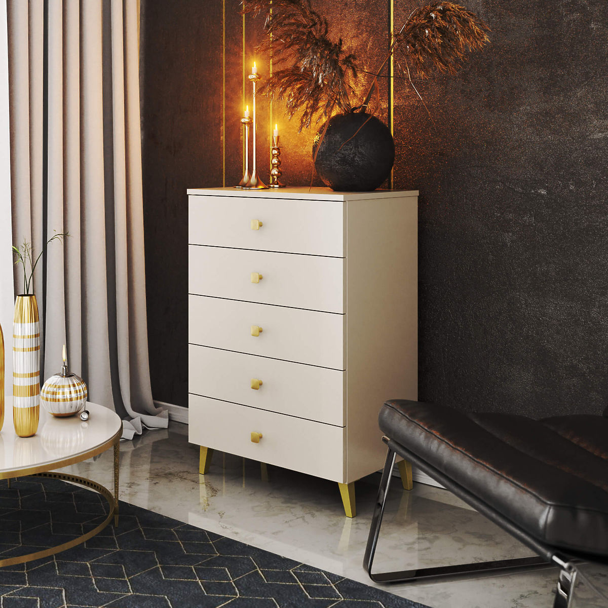 KOMODA MOBI 5 PREDALNIKOV KAŠMIR ZLATO