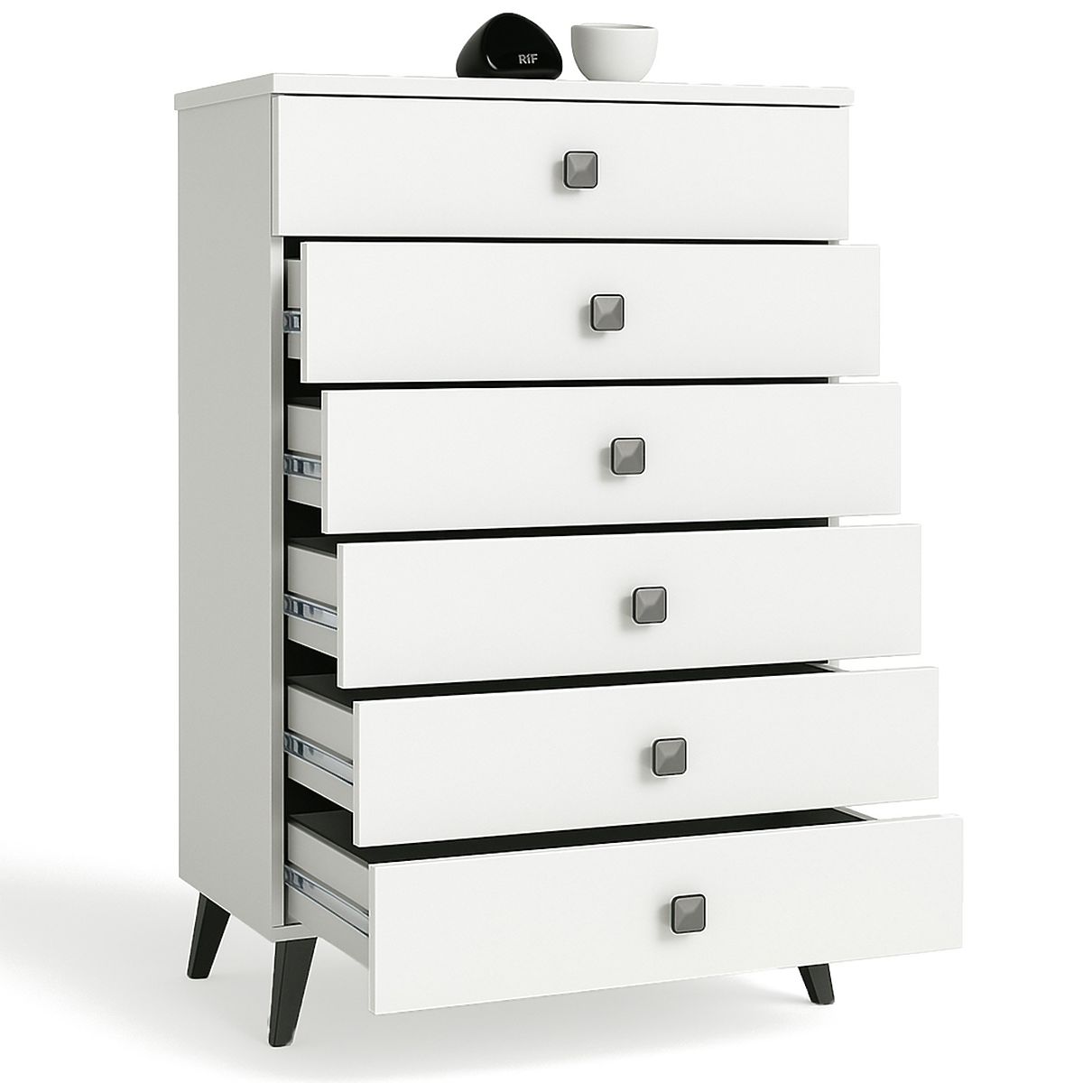 Majhna komoda je kos pohištva, ki se bo našel v vsaki sobi. Sodobne barve, trdna konstrukcija in natančna izdelava so privedli do nastanka omarice, ki se bo izkazala v predsobi, dnevni ali otroški sobi, pa tudi v spalnici. Lahko se uporablja tudi v pisarniškem prostoru, kjer omogoča shranjevanje številnih dokumentov in drugih pisarniških potrebščin. Komoda je sestavljena iz 6 predalov. Pohištvo združuje belo in črno barvo.
