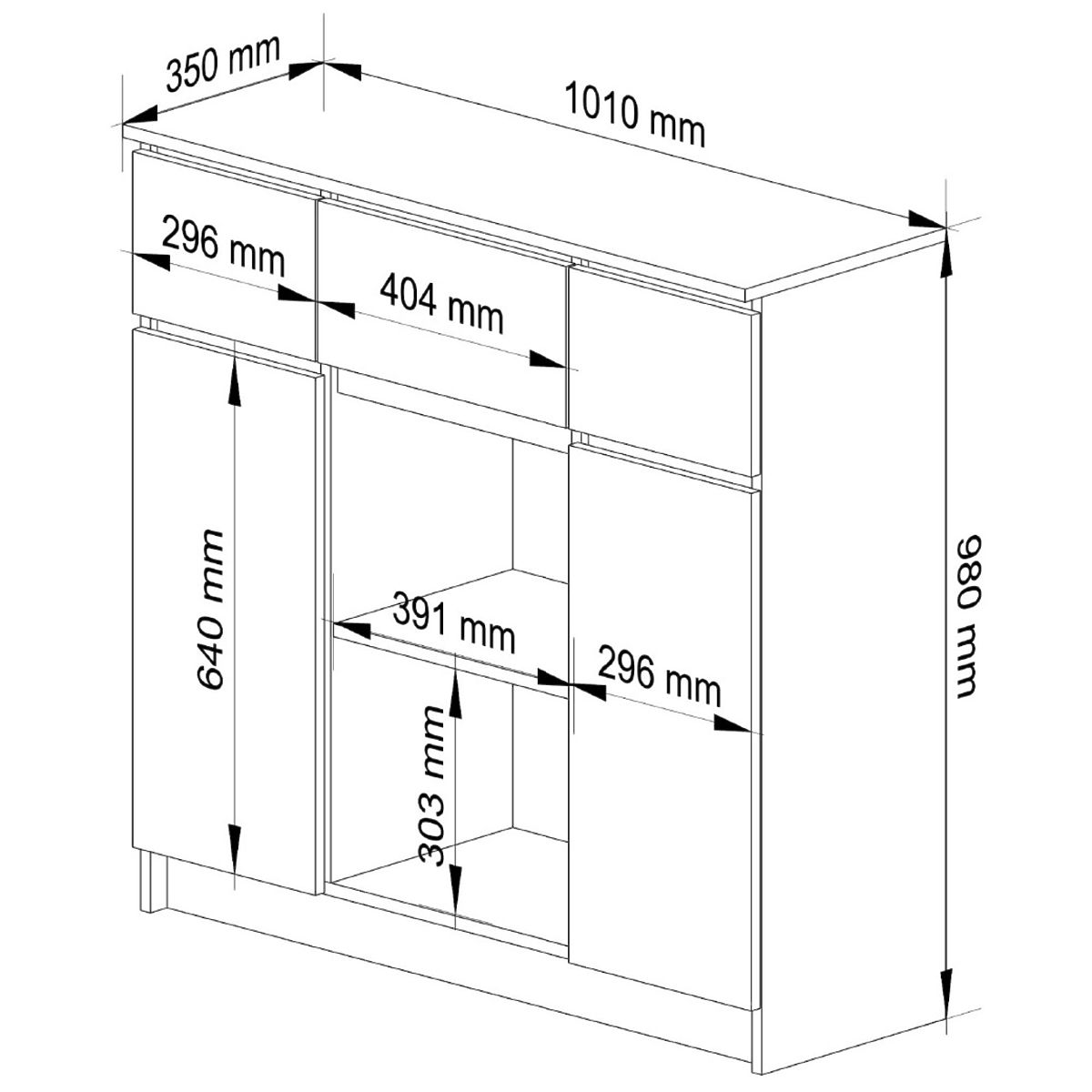 KOMODA K100 Izdelana iz laminirane plošče 16 mm, odporne proti obrabi.
