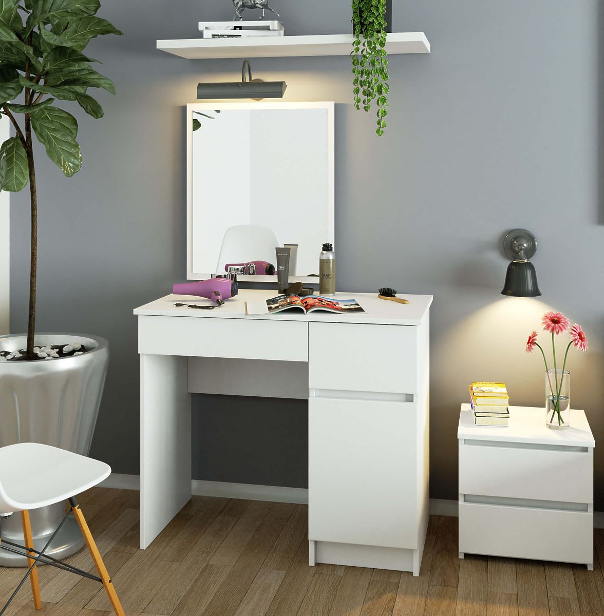 Kompaktna različica toaletne mize za ženske, ki želijo vsako jutro hitro ličenje. Rešitev, namenjena spalnicam in ne samo. Dimenzije toaletne mize so odlične tudi za kozmetične salone.