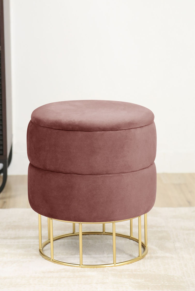 Podnožnik ali puf je odličen dodatek za dnevno sobo ali spalnico. Z njim si utrujene noge po celodnevni hoji lahko odpočijejo, in če je puf izdelan iz mehkega velurja, to le še okrepi prijetne občutke počitka. Sodobni videz dopolnjujejo kovinske noge, pobarvane v zlato barvo, ki je letos tako modna. Odprto pokrov omogoča dostop do odlagalnega prostora, kamor lahko shranite predmete, ki jih ne potrebujete vsakodnevno.