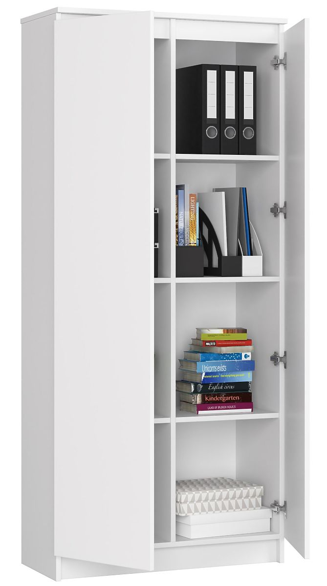 V pisarniškem prostoru je izjemno pomembno, da ima vse svoje mesto. Če ne veste, kam shraniti račune, mape in dokumente, se pojavi nepotreben kaos. Odličen način, da to preprečite, je moderna bela pisarniška omara. Opremljena je z osmimi prostornimi policami, na katere lahko udobno shranite vse pomembne stvari, vrata pa jih zaščitijo pred nepotrebnim prahom. Pohištvo je izdelano iz odporne laminirane plošče, ki zagotavlja trajnost in dolgotrajno uporabo. Pisarniški regal 80cm združuje šarm in eleganco. Njegov klasičen videz se odlično prilega modernim, minimalističnim prostorom, vendar se bo prav tako ujemal z nekoliko ekstravagantnejšimi interierji. Naša pisarniška omara je vse pogosteje izbrana ne le s strani podjetnikov, temveč tudi posameznih strank, ki cenijo njeno funkcionalnost in visoke estetske vrednosti. V kombinaciji z ugodno ceno tvori popoln kos pohištva.