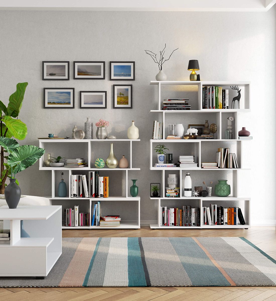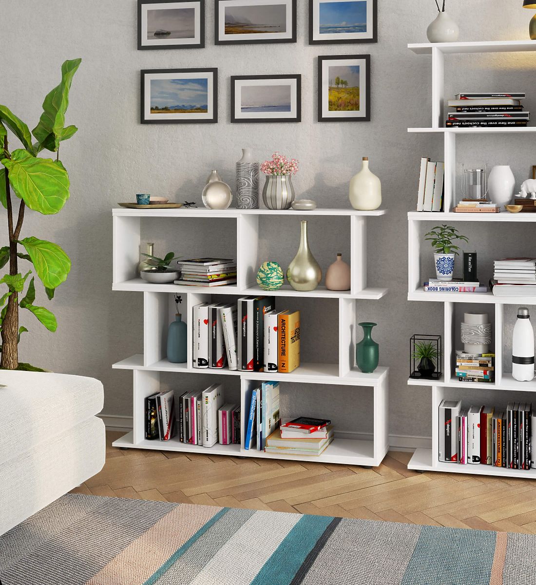 - eleganten videz: regal se odlikuje po preprosti obliki, je v stilni beli barvi,