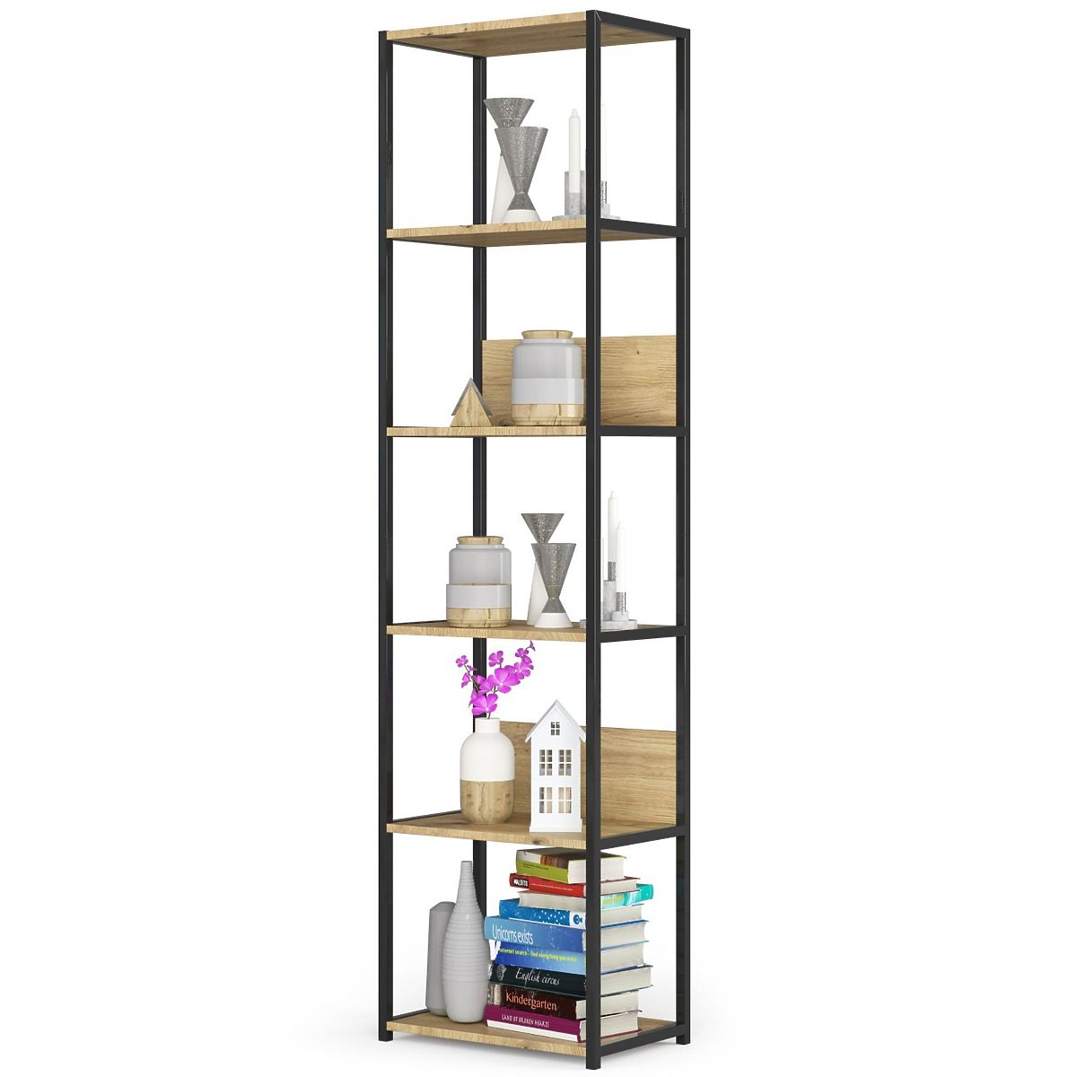 Kovinski loft regal s 6 policami in črnim okvirjem. .. več