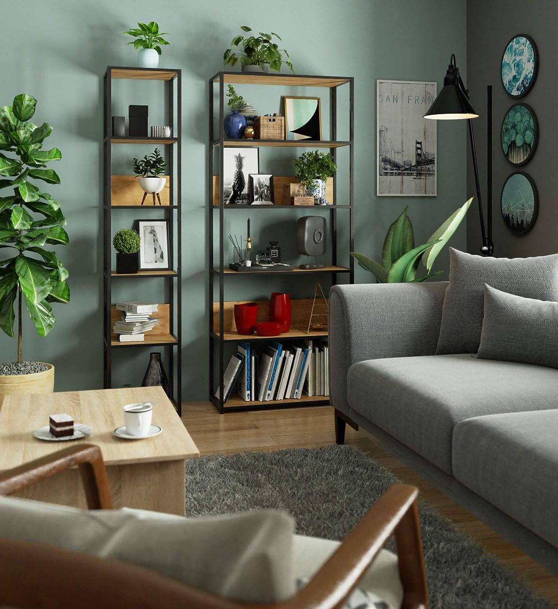 Kovinski loft regal je praktično in moderno pohištvo, ki se prilega tako dnevni sobi kot pisarni. Regal s kovinskim črnim okvirjem in 6 policami v barvi craft hrast. Police regala so izdelane iz laminirane plošče debeline 16 mm. Je trpežen in odporen material, ki se odlikuje po visoki odpornosti proti obrabi. Robovi so dodatno zaščiteni z ABS robom, kar zagotavlja, da bo pohištvo še vedno videti dobro tudi ob zelo intenzivni vsakodnevni uporabi. Regal je opremljen s 6 policami, na katere lahko postavite predmete, ki jih želite razstaviti ali imeti pri roki. Celoten videz je zelo stilski in moderen.
