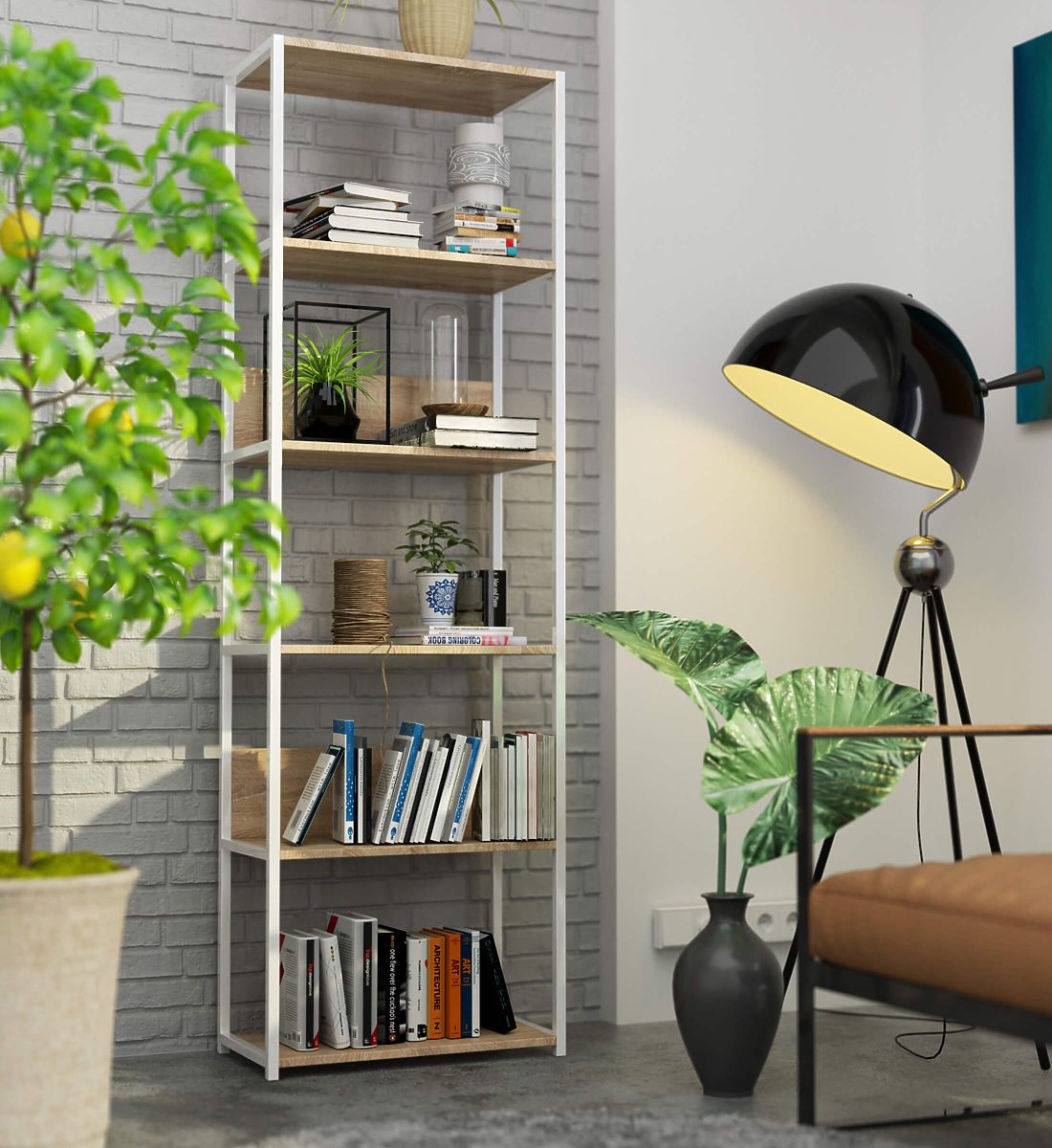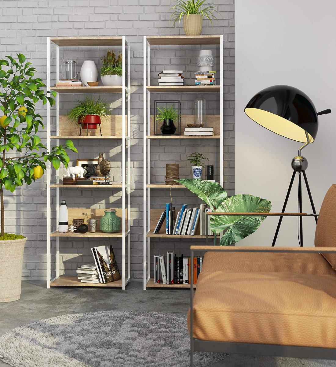 Kovinski loft regal je praktično in moderno pohištvo, ki se prilega tako dnevni sobi kot pisarni. Regal z belim kovinskim okvirjem in 6 policami v barvi sonoma hrast. Police regala so izdelane iz laminirane plošče debeline 16 mm. Je trpežen in močan material, ki se odlikuje po visoki odpornosti proti obrabi. Robovi so dodatno zaščiteni z ABS robom, kar zagotavlja, da bo pohištvo videti dobro tudi pri zelo intenzivni vsakodnevni uporabi. Regal je opremljen s 6 policami, na katere lahko postavite predmete, ki jih želite razstaviti ali imeti pri roki. Celoten videz je zelo stilski in moderen.