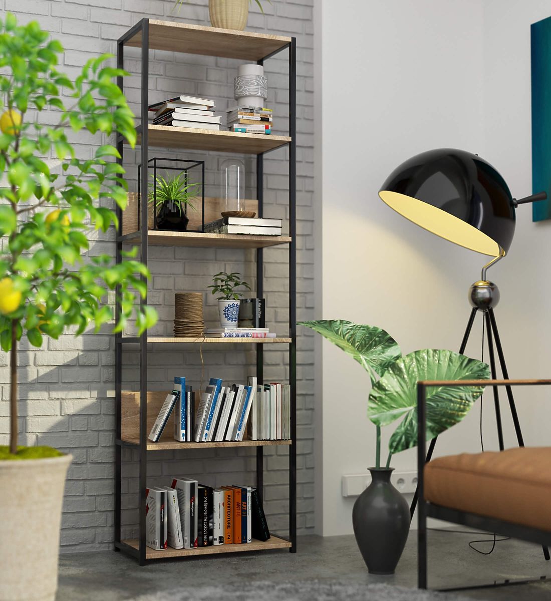 Kovinski loft regal je praktično in moderno pohištvo, ki se prilega tako v dnevno sobo kot v pisarno. Regal s črnim kovinskim okvirjem in 6 policami v barvi hrast sonoma. Police regala so izdelane iz laminirane plošče debeline 16 mm. Gre za trpežen in odporen material, ki se odlikuje po visoki odpornosti proti obrabi. Robovi so dodatno zaščiteni z ABS robom, kar zagotavlja, da bo pohištvo še vedno videti dobro, tudi pri zelo intenzivni vsakodnevni uporabi. Regal je opremljen s 6 policami, na katere lahko postavite predmete, ki jih želite razstaviti ali imeti preprosto pri roki. Skupaj deluje zelo stilsko in moderno.