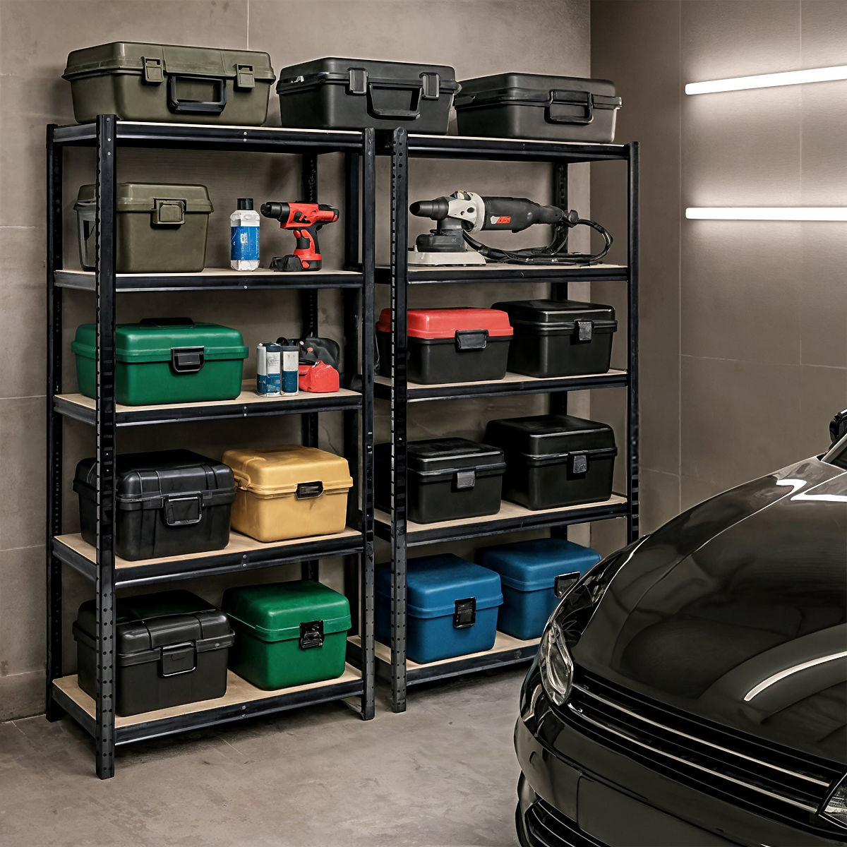 Globina - 40 cmKovinski regal idealen za shranjevanje. Primeren za garažo, delavnico, kletne prostore in gospodinjske prostore. Regal v črni barvi s širino 90 cm in višino 180 cm. Police izdelane iz odporne MDF plošče. Nosilnost na polico je 175 kg.