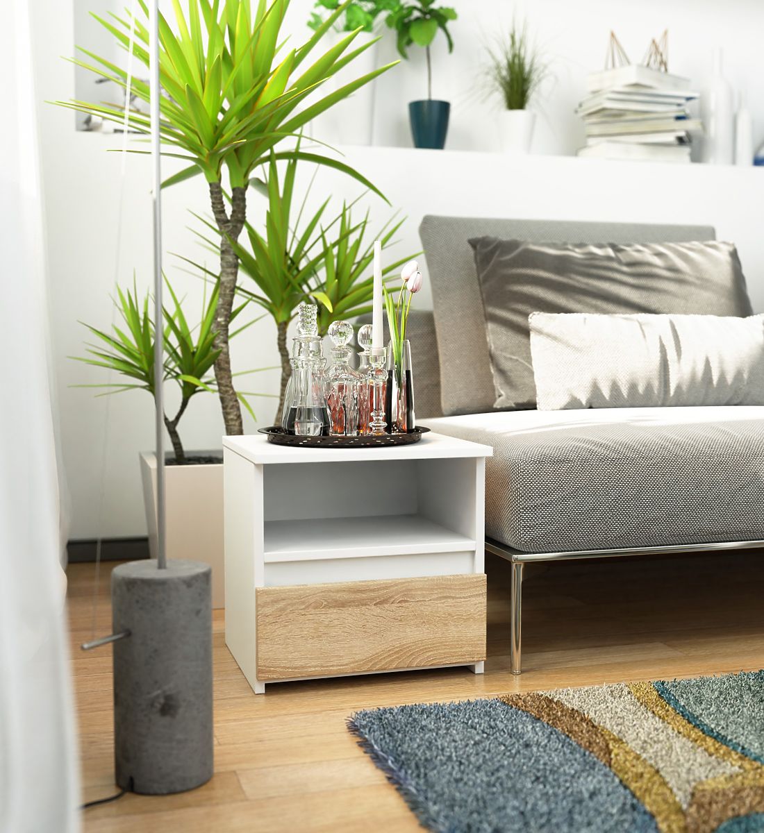 Nočna omarica CL1 v barvi bela/hrast sonoma. .. več