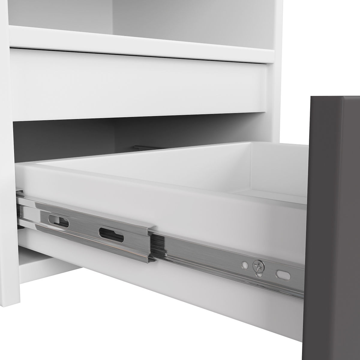 Nočna omarica CL1 v beli in grafitno sivi barvi z enim predalom. .. več