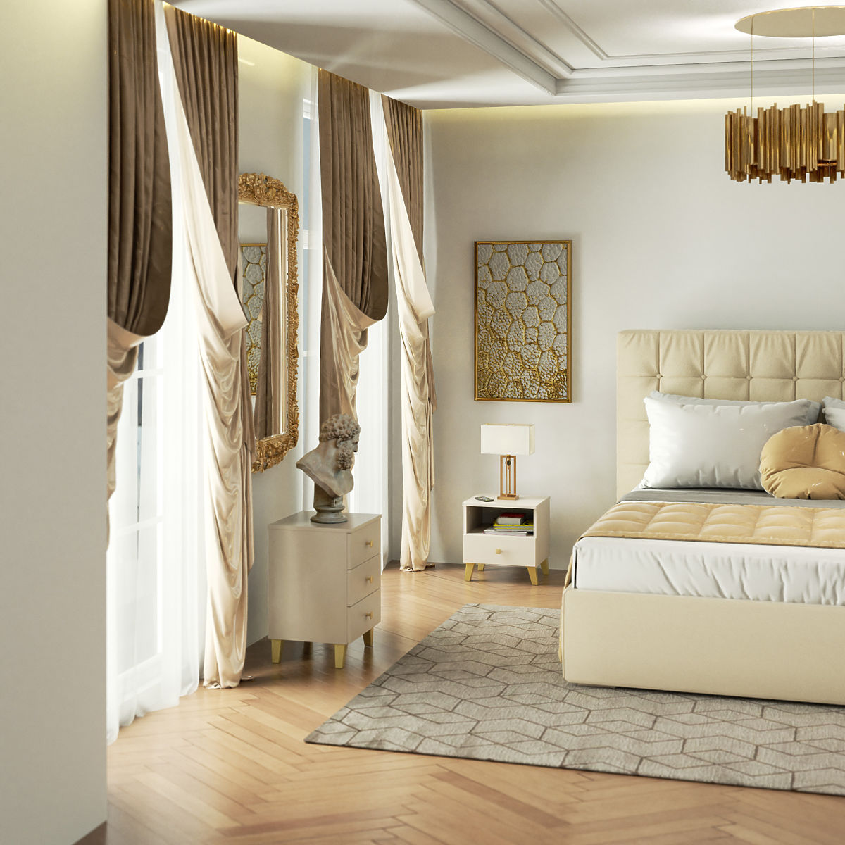 - moderen videz - pohištvo je preprosto v obliki, pritegne zanimiva barvna kombinacija kašmirja z zlatom,