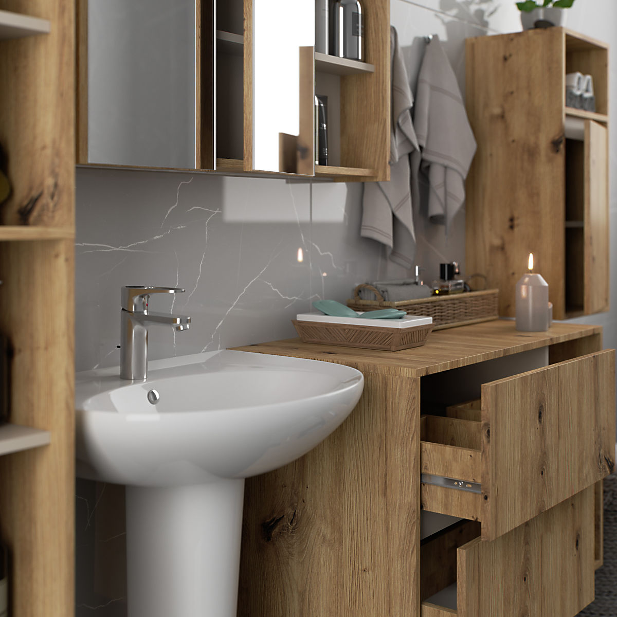Lukahome.si » Kopalnica in stranišče / Kopalniški kompleti / KOMPLET VISEČEGA KOPALNIŠKEGA POHIŠTVA VAMI HRAST ARTISAN / KAŠMIR
