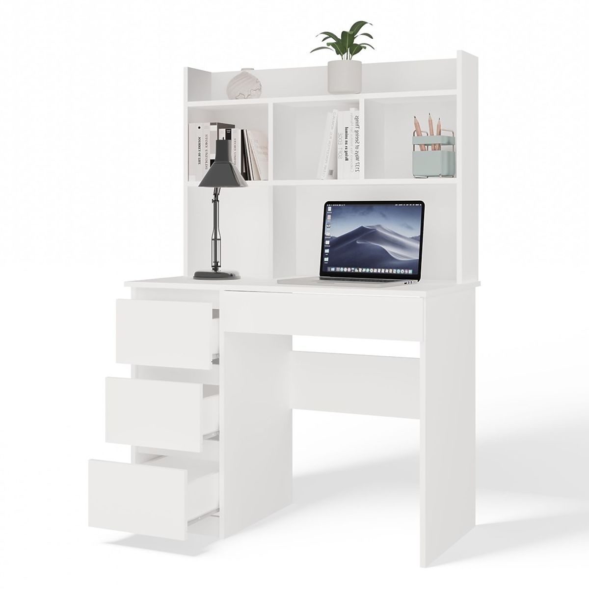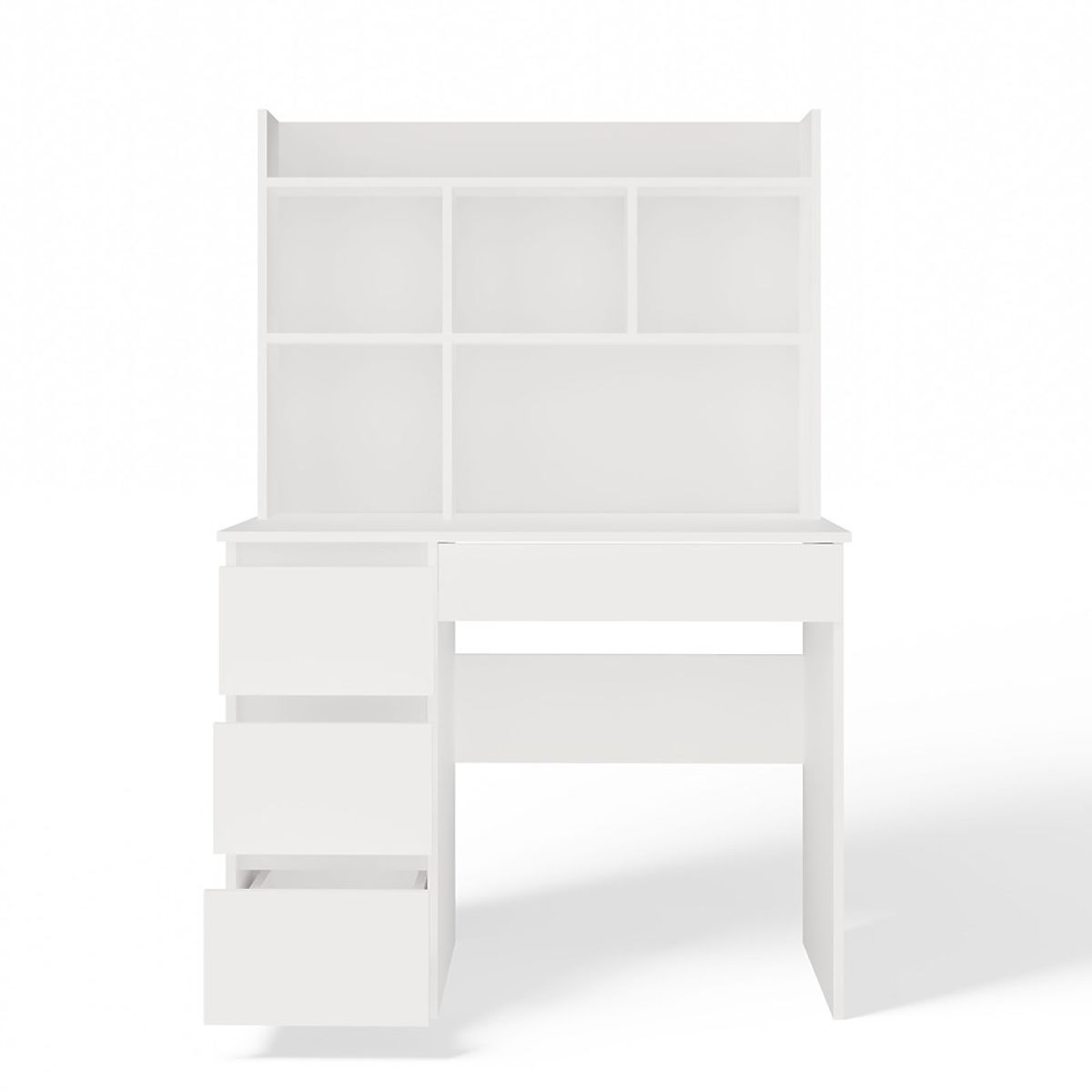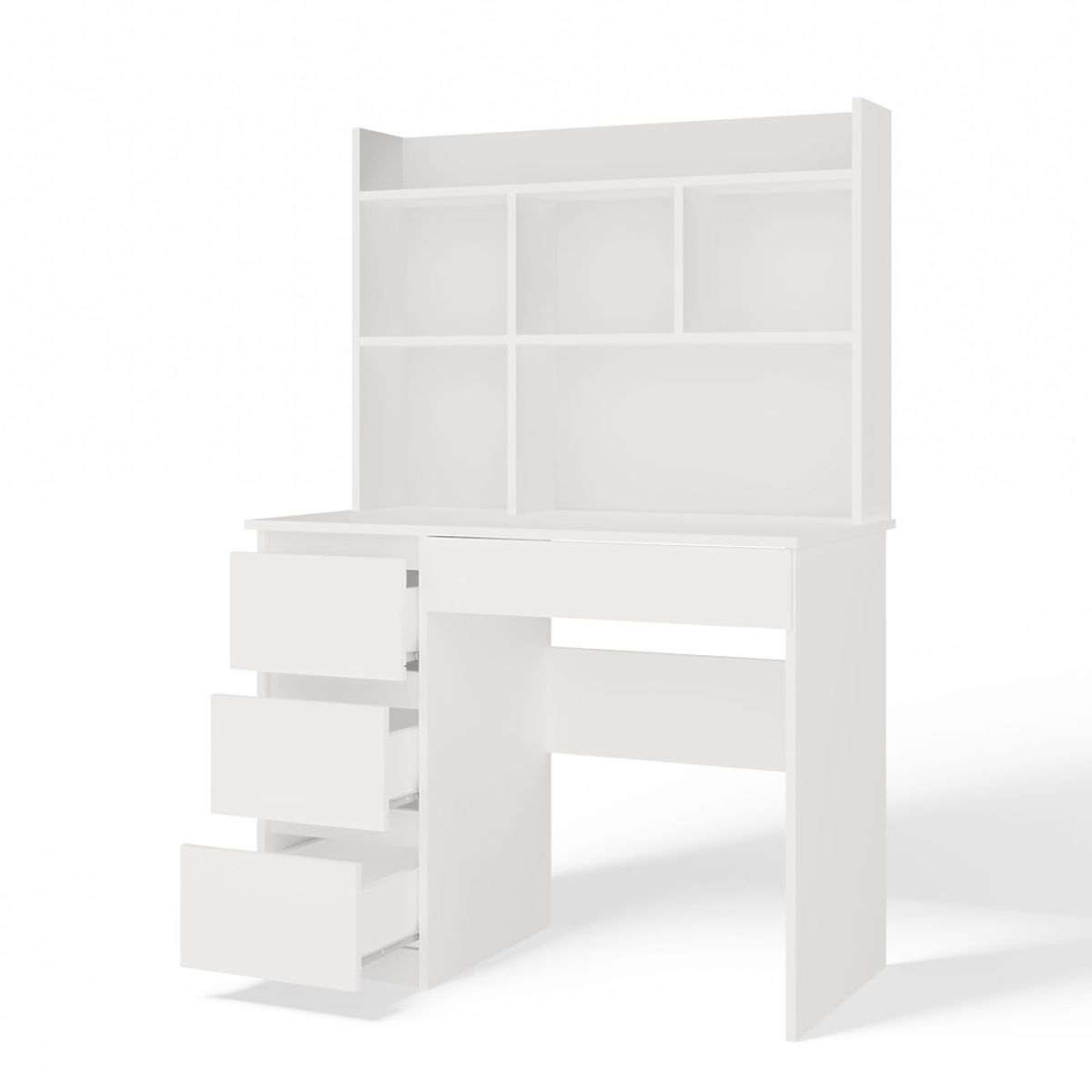 Pisalna miza MIJAS Leva z Nadgradnjo Mat Bela 4 Predali 4 Police za Pisarno Sobe