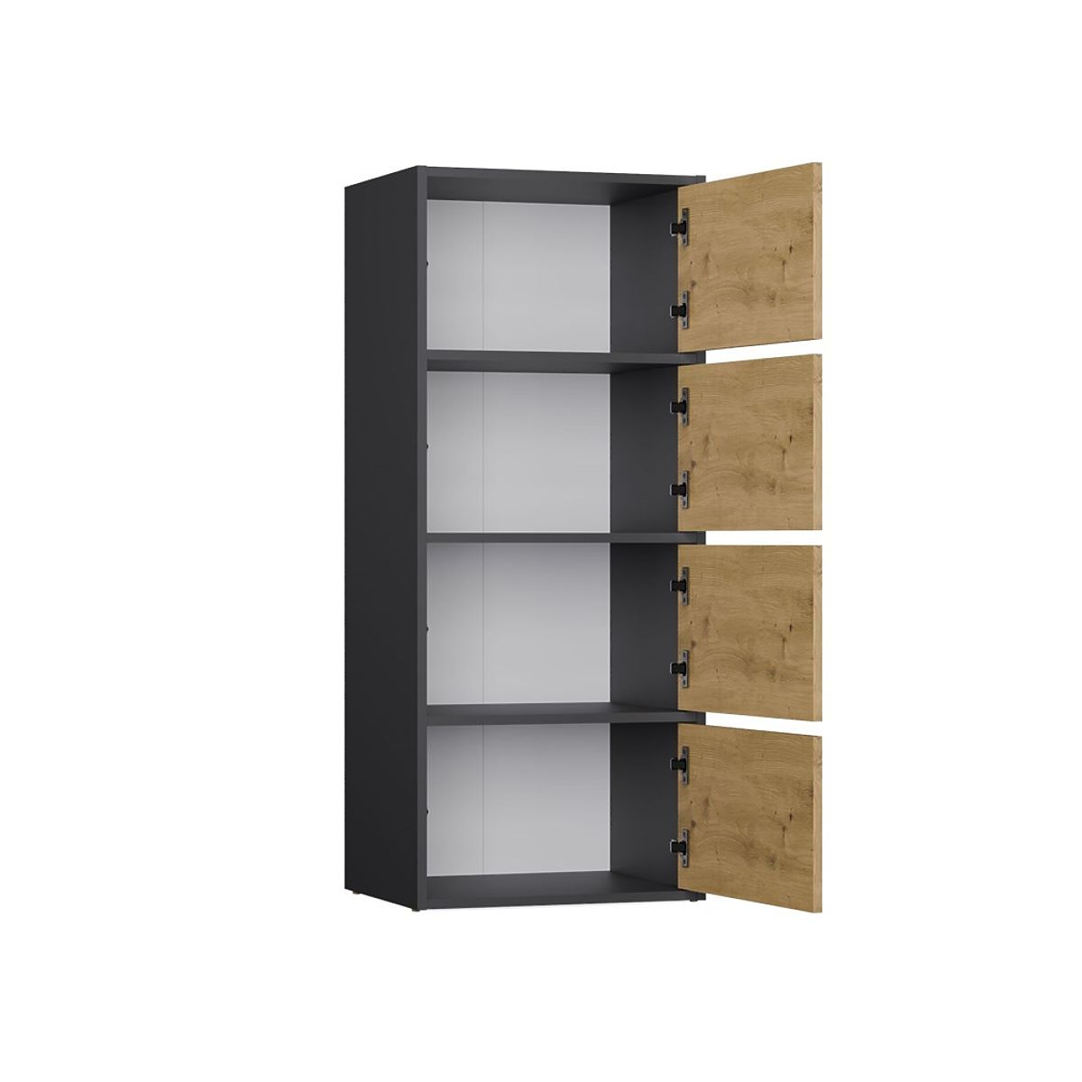 Zahvaljujoč prostornim policam, skritim za gladkimi vrati, komoda nudi veliko prostora za shranjevanje in olajša vzdrževanje reda v vsakem prostoru.
