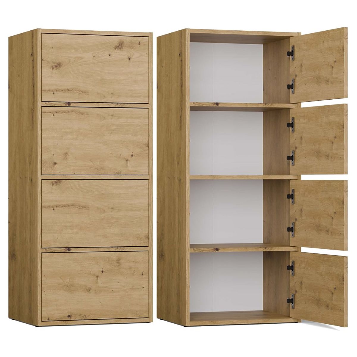 Zahvaljujoč prostornim policam, skritim za gladkimi vrati, komoda nudi veliko prostora za shranjevanje in olajša vzdrževanje reda v vsakem prostoru.