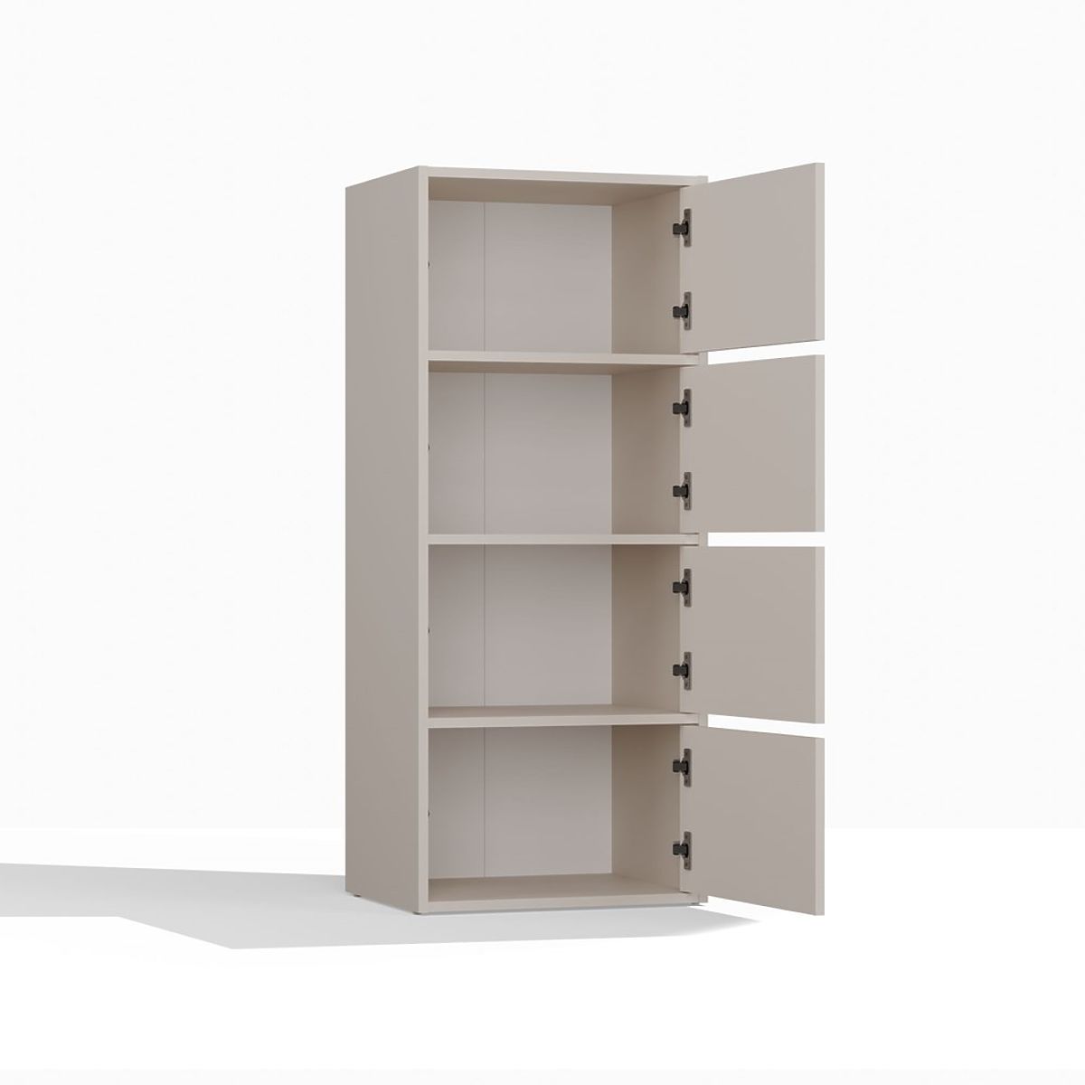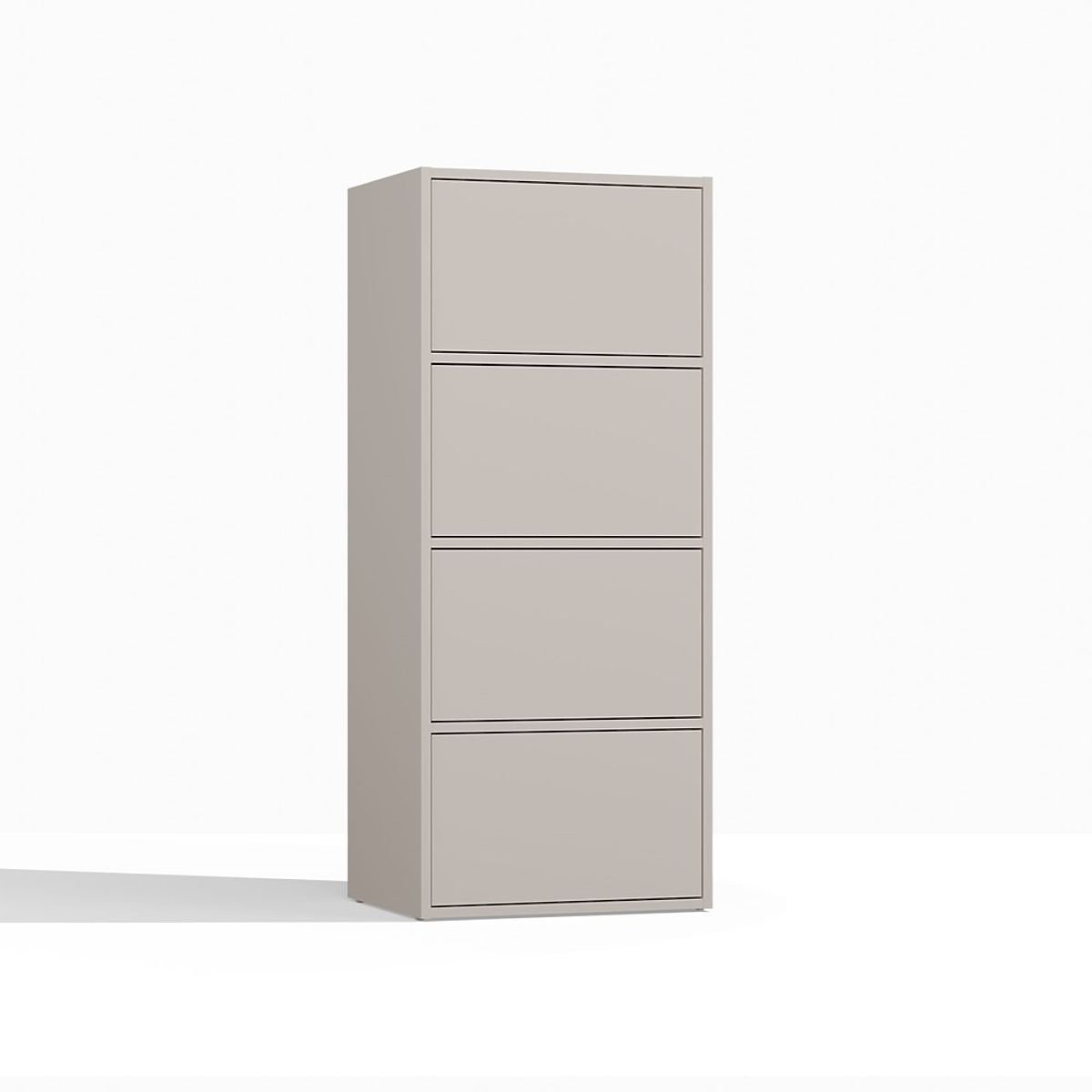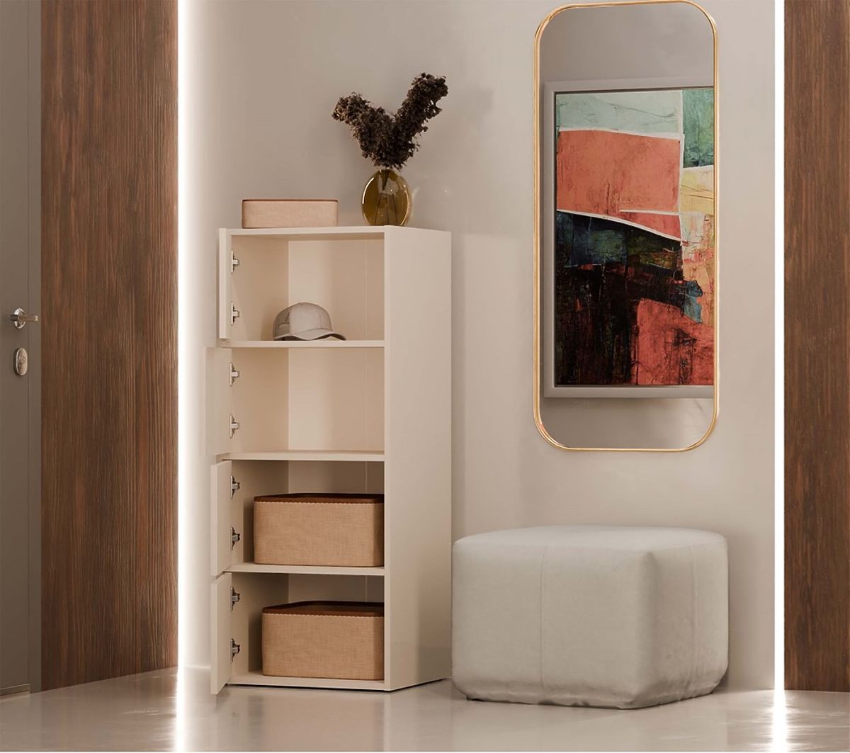 Zahvaljujoč prostornim policam, skritim za gladkimi vrati, komoda nudi veliko prostora za shranjevanje in olajša vzdrževanje reda v vsakem prostoru.