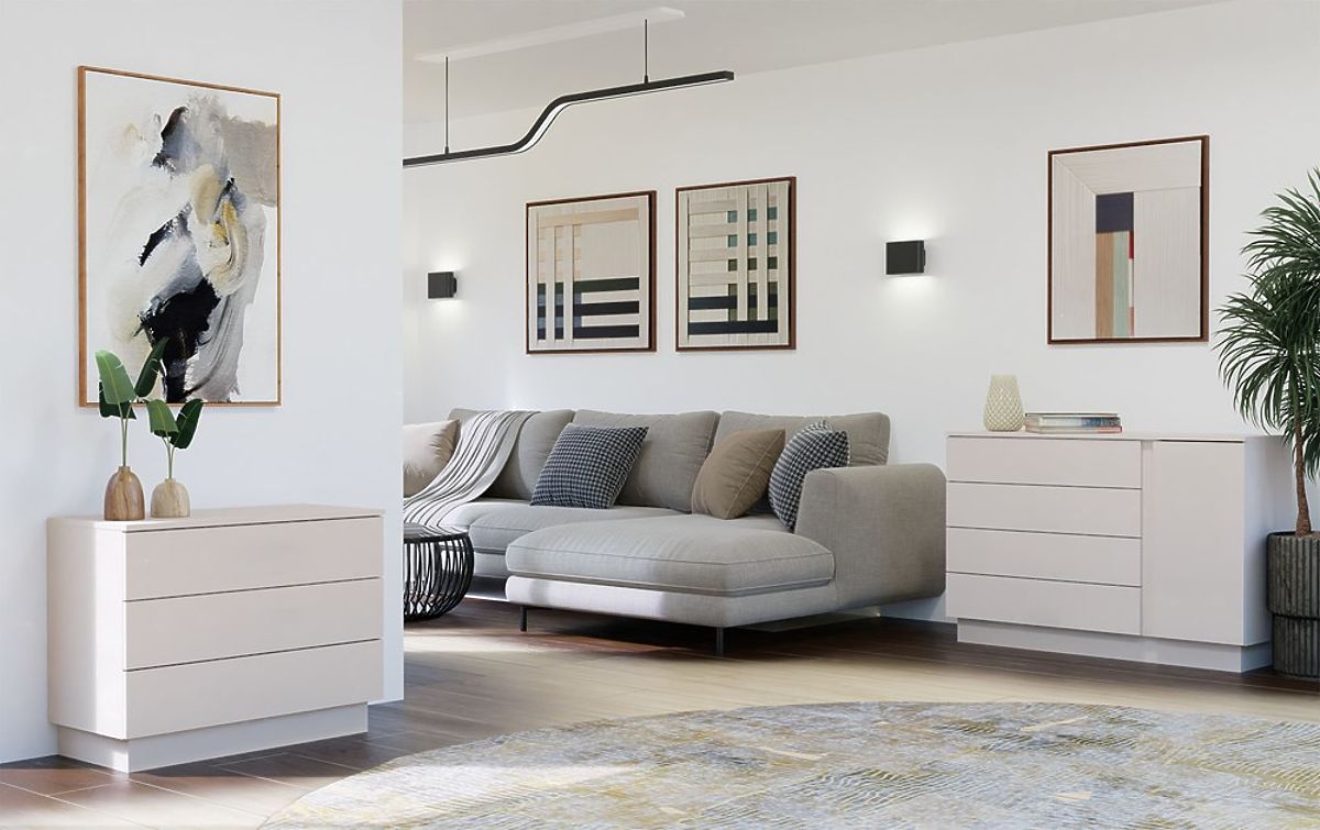Moderna komoda AMBER 3S s tremi predali v kašmir bež barvi. .. več